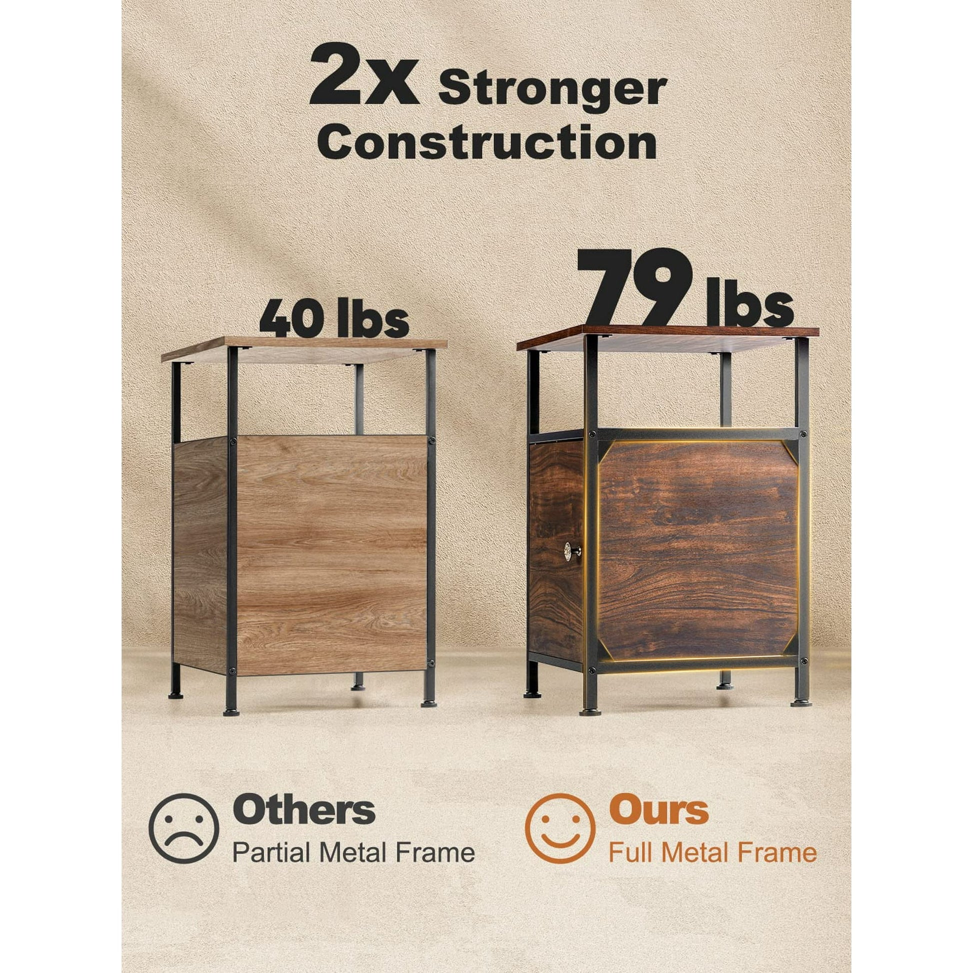 2-Tier Rustic Full Metal Frame Nightstand Table End Table Side Table with Storage Cabinet for Livingroom Bedroom
