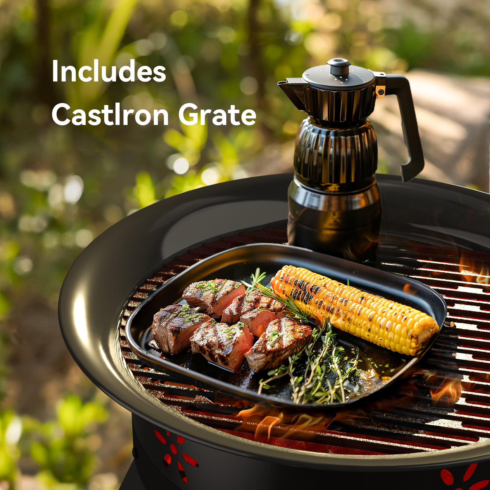 - DURABLE CONSTRUCTION: Our portable fire pits with grills are typically constructed from durable materials such as stainless steel or cast iron, ensuring longevity and resistance to heat and weather elements for reliable outdoor use