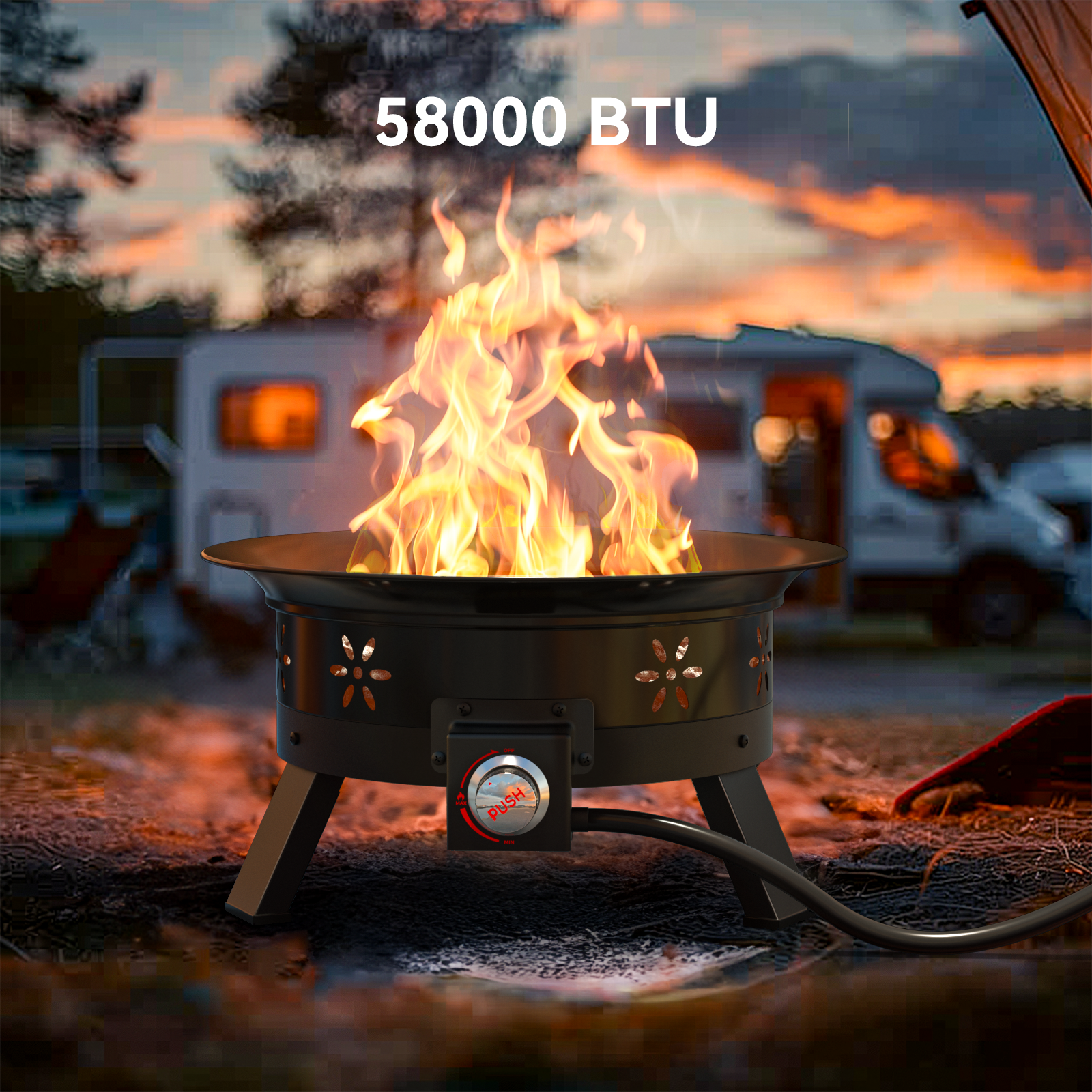 24 inch Portable Fire Pits with Grill for Outside 58000 BTU Gas Fire Bowl with Foldable Legs & Lid & Carry Kit & Lava Rock