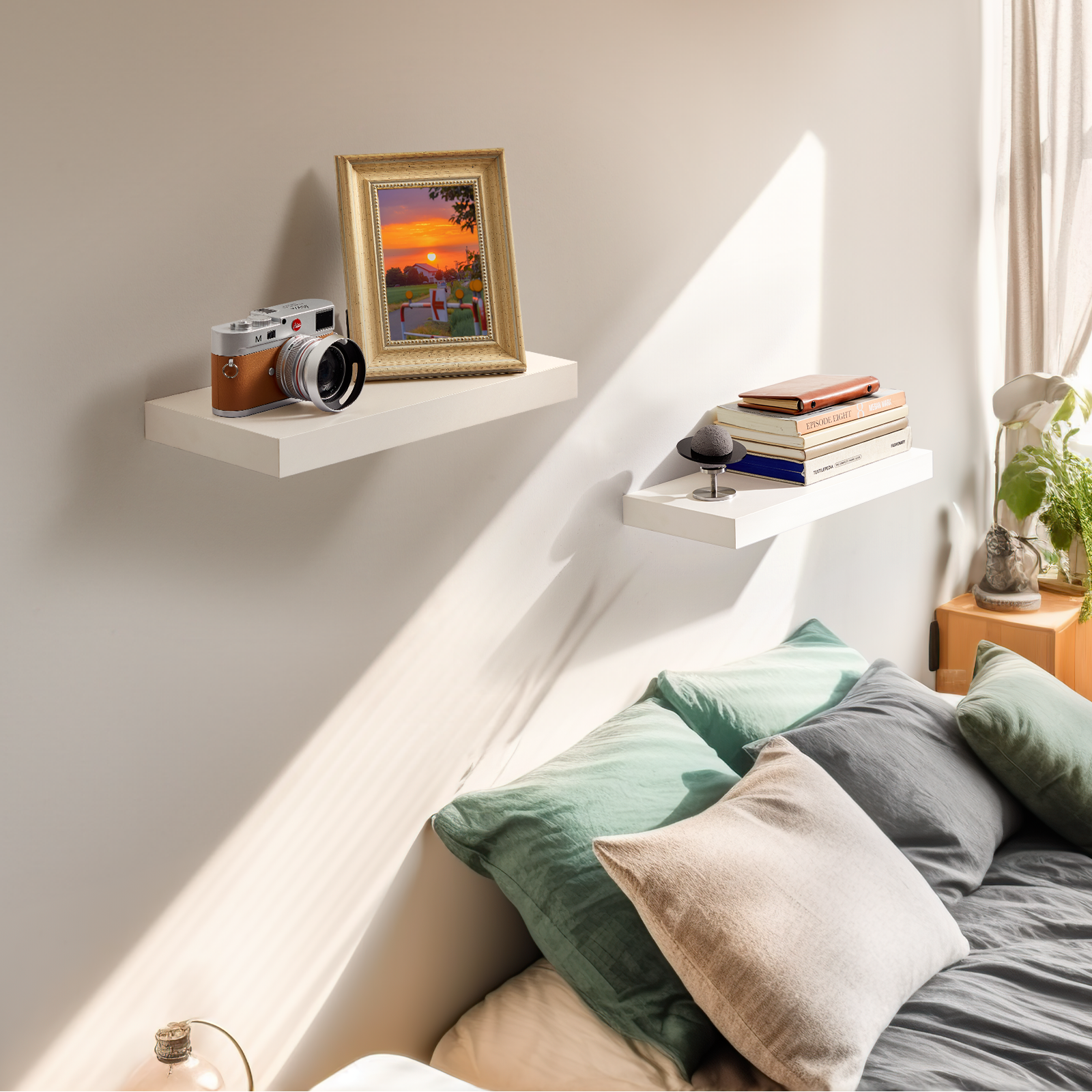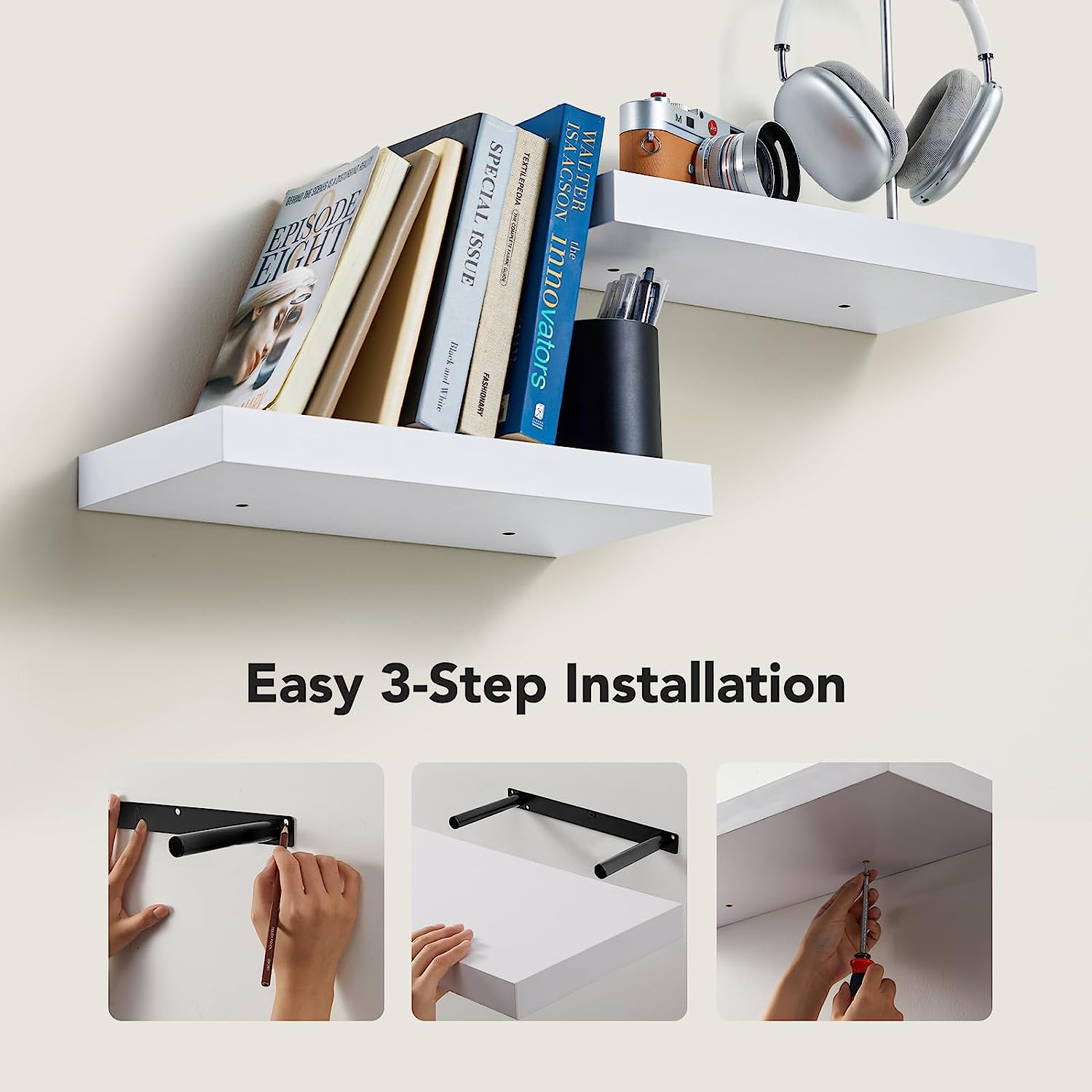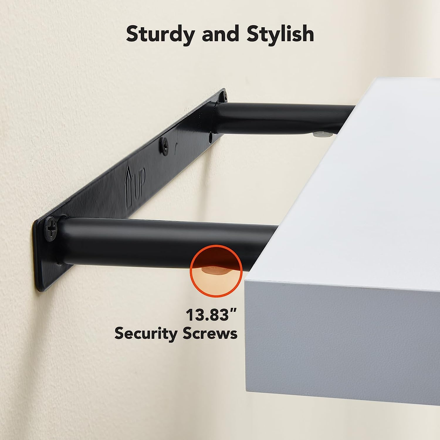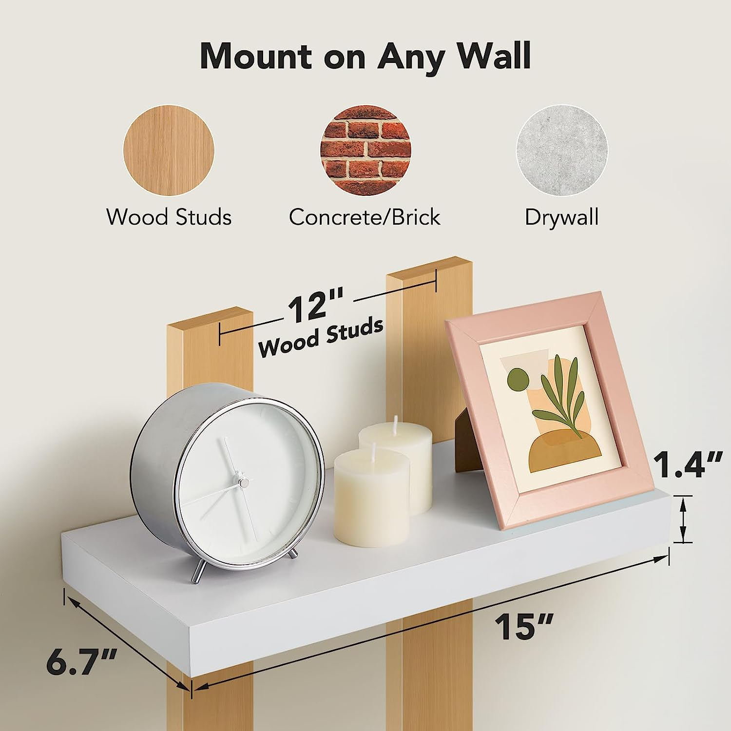 - Invisible & Sturdy Metal Brackets: the strong metal brackets attach the shelves to the wall firmly and are hidden behind the shelves. 1.4-inch thick faux wood boards hold up to 22lbs. safe for collectibles including photos, books, trophies, small plants, and more.