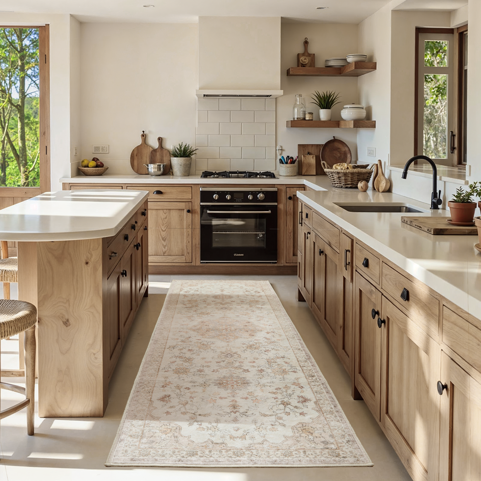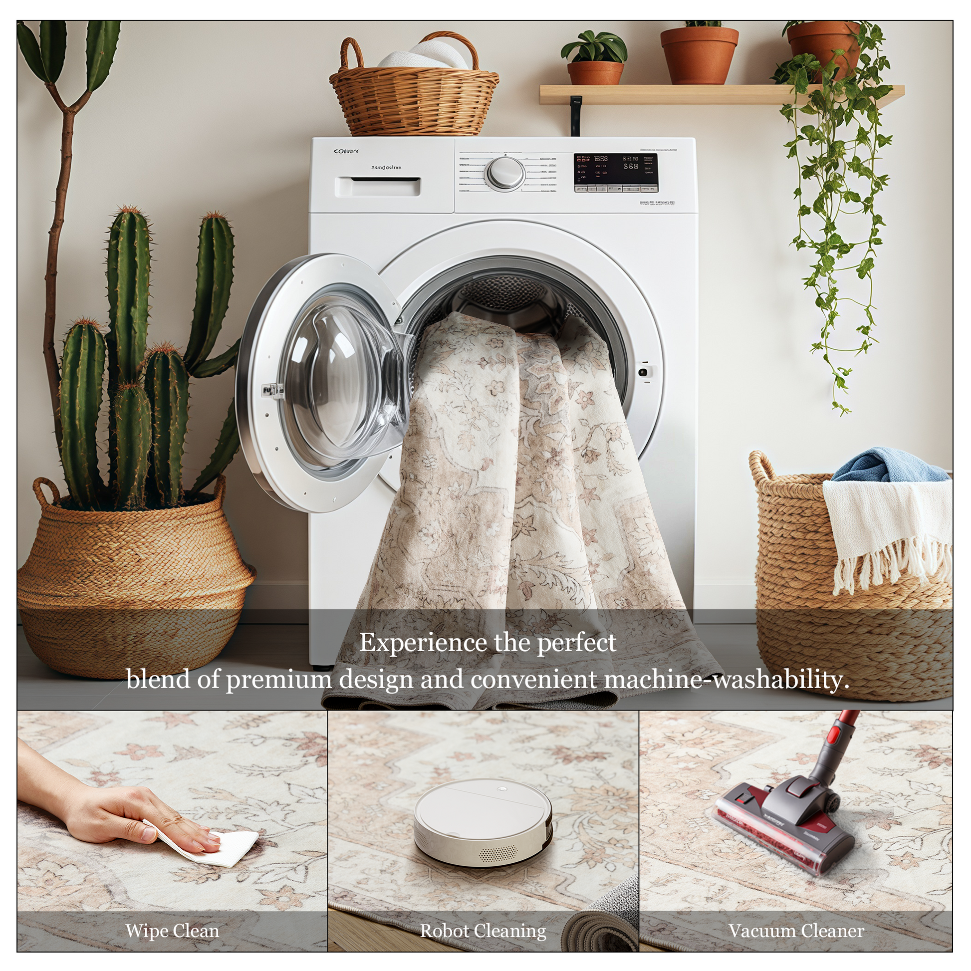 - 【Easy Care】With its machine-washable feature, this rug is incredibly easy to clean and maintain. Simply toss it in the washer, and it’ll look as good as new—every time. For daily care, a swift sweep or wipe suffices. Perfect for busy households, pet owners, or anyone who values convenience.