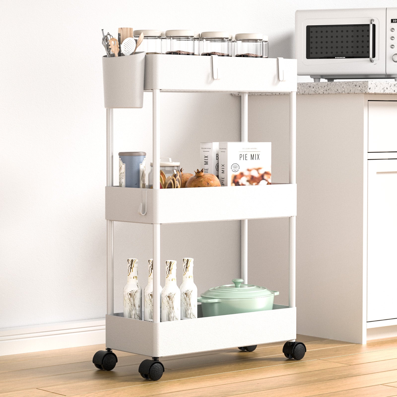 3 Tier Slim Storage Cart with Wheels, Bathroom Cart Organizer Small, Rolling Cart for Bathroom, Kitchen, Narrow Space, White