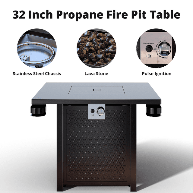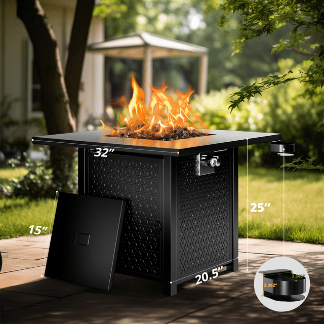 - 32-Inch Fire Table: A 32-inch fire table is well-spaced enough for holding drinks, food, and snacks for your party or romantic meat outdoors. So dont let your guests hold drinks in their hands all night, provide a patio party where guests can sit, chillax and chat