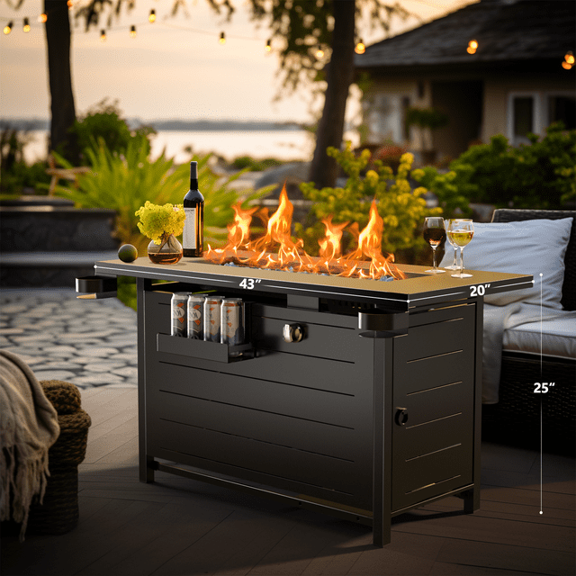 - ENOUGH STORAGE SPACE: More than just warmth, our 43" square fire table offers ample space for drinks, food, and treats. Let your guests relax, mingle, and enjoy without juggling their drinks all evening