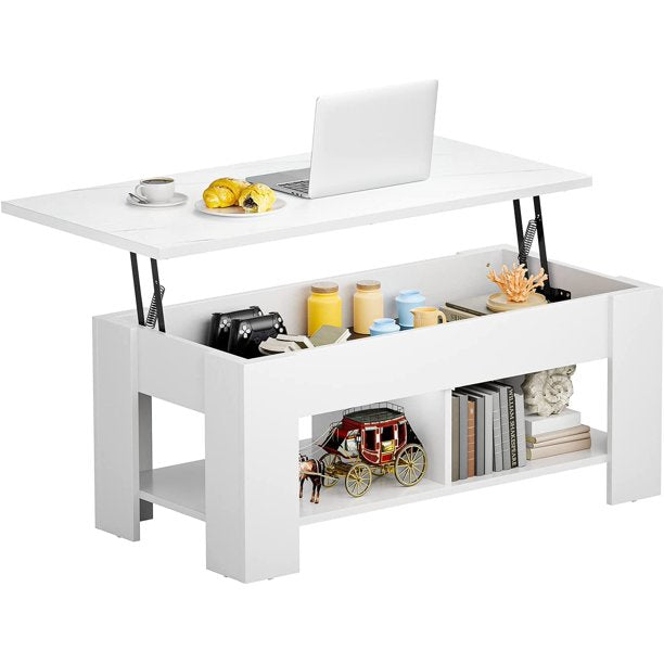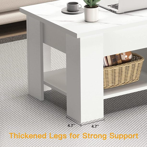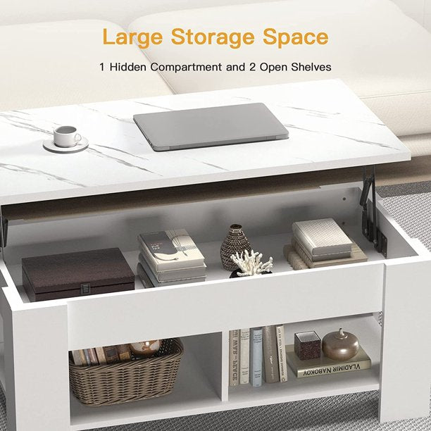- Large Storage Space: The lift top coffee table features a hidden compartment under the tabletop and two separate open shelves underneath to store your home essentials for a more organized and neat home living space