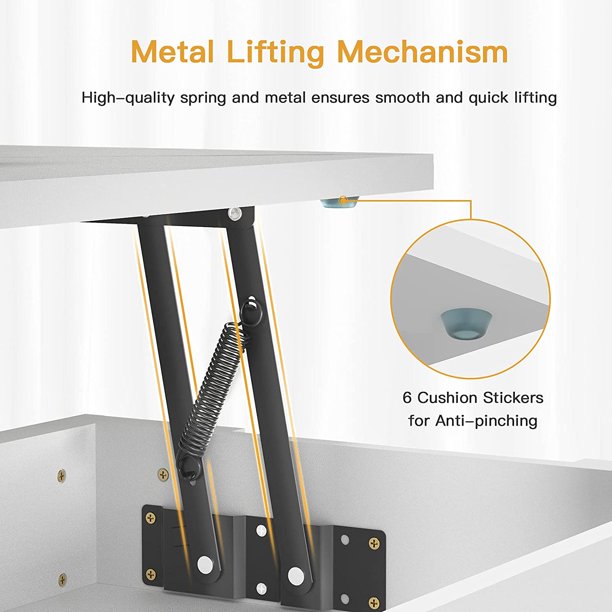 - Upgraded Lifting Top: The high-quality pop-up mechanism of this coffee table allows steady and smooth operation. Rubber bumpers under the tabletop help to avoid pinching your hands and dampen noise when closing