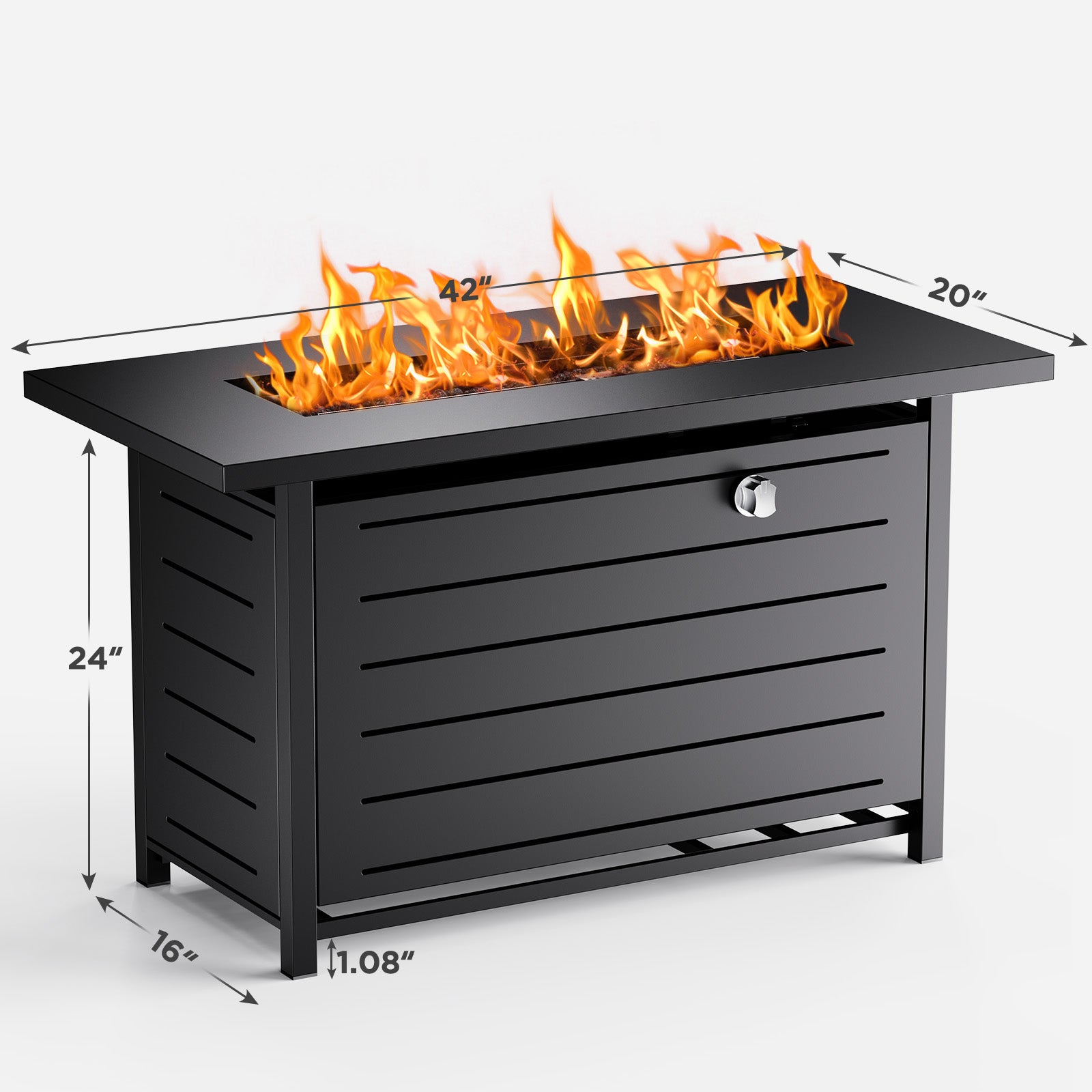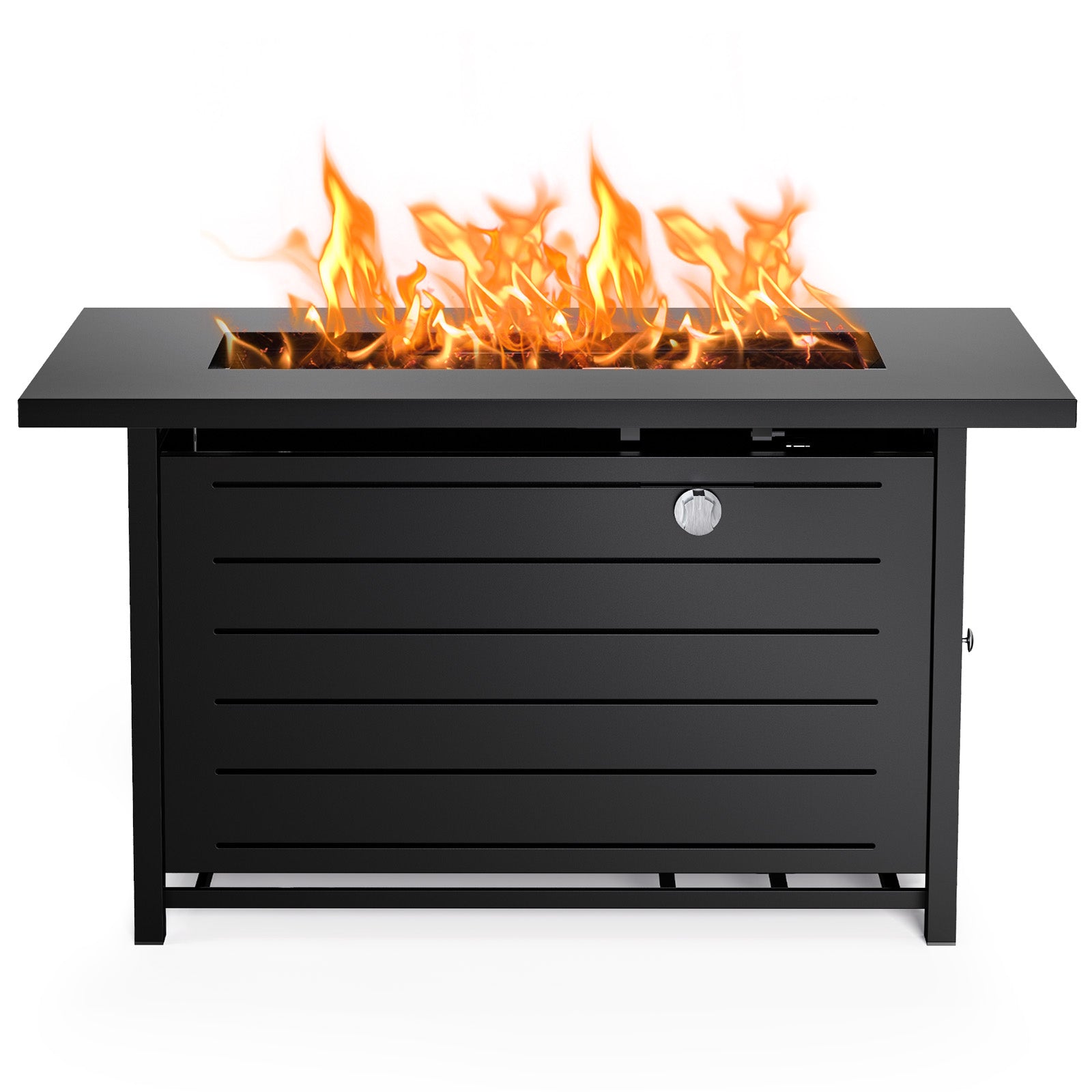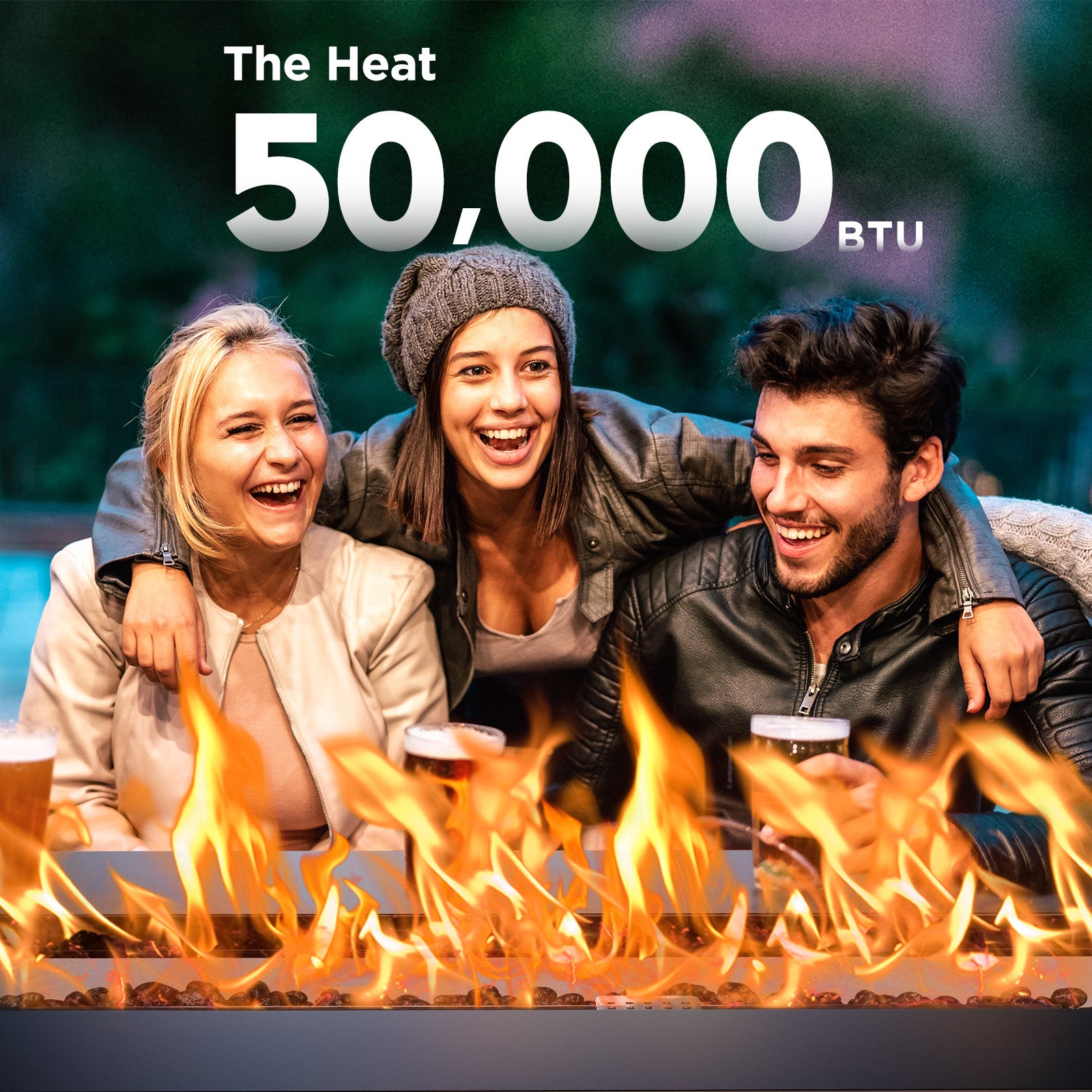 - 50,000 BTU Output Gas Firepit:50,000 BTU LP stainless steel burner propane firepit, Use a propane tank to fill your patio or sitting space with fully adjustable.