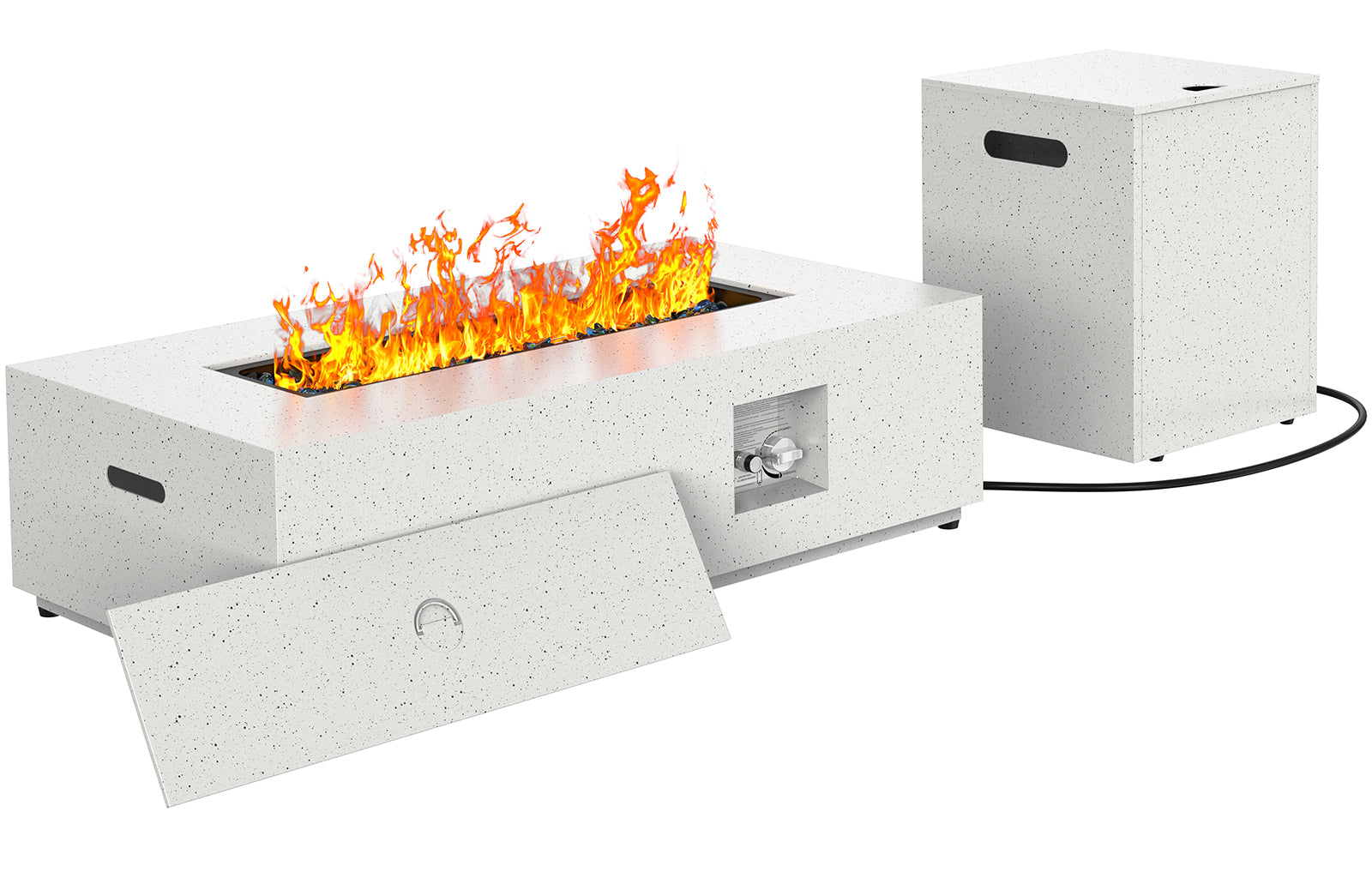 - 【Fire Pit + Side Table (Hidden Tank Storage)】More than just a heater, this versatile fire pit table doubles as a functional side table with a hidden propane tank compartment (sold separately). Enjoy a clean, clutter-free look while keeping the tank safely concealed. Perfect for entertaining, holding drinks, or displaying décor when not in use.