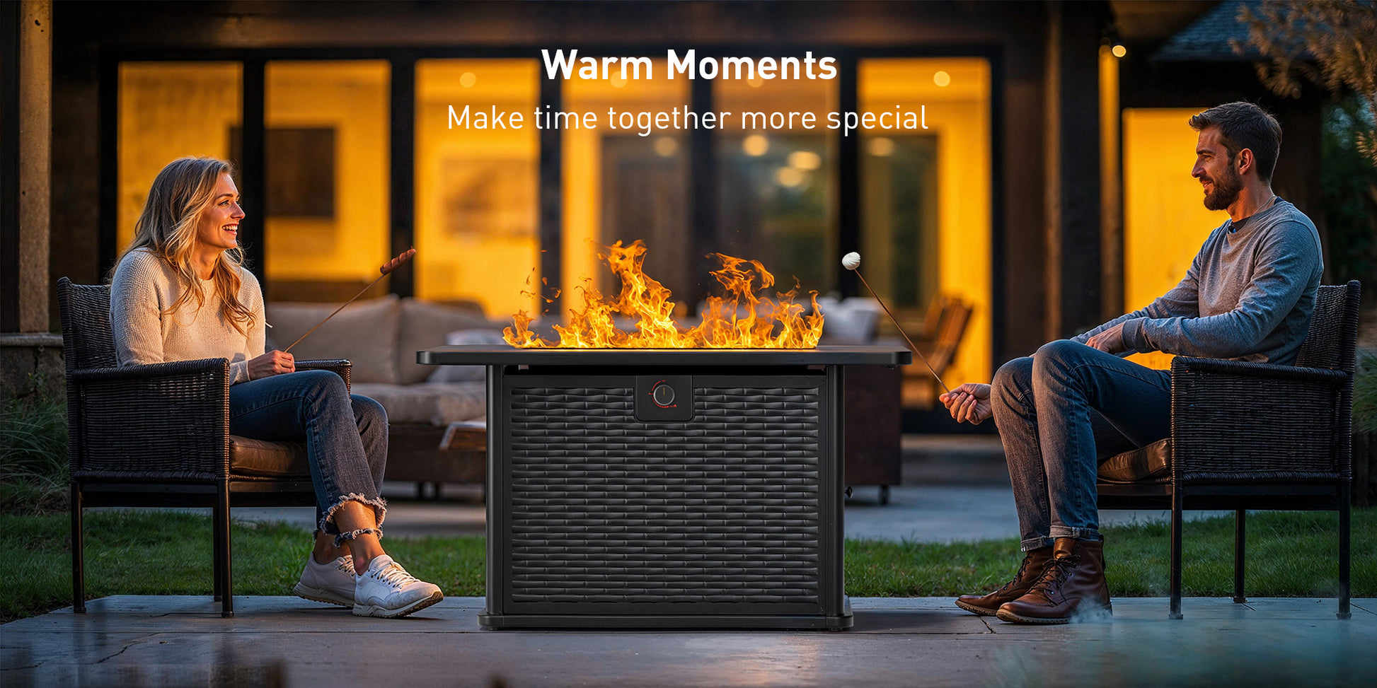 - 【Sleek & Durable Outdoor Design】Elevate your outdoor space with this sleek propane fire pit table, crafted with durable PE wicker panels and a stainless steel frame for long-lasting style. Whether placed on your patio, deck, or by the pool, this fire pit doubles as a stylish centerpiece for any setting.