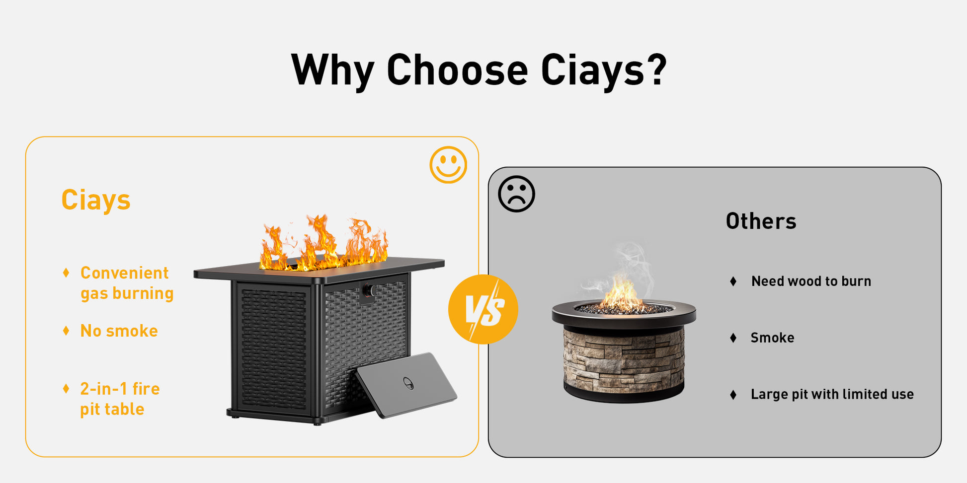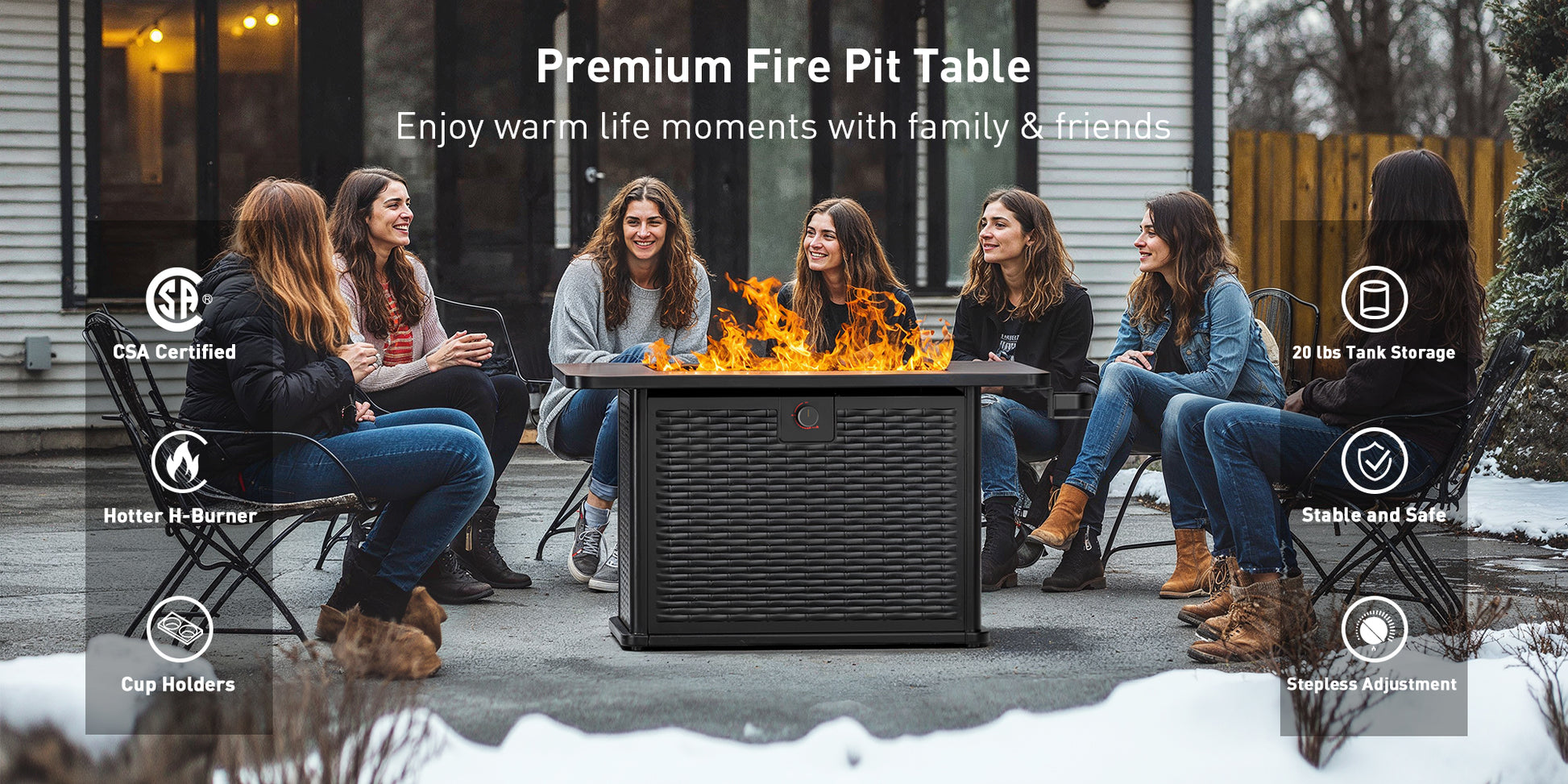 - 【Safe & Weather-Resistant Construction】Engineered with safety in mind, this fire pit table includes a sturdy base, heat-resistant materials, and a secure lid to extinguish flames quickly. The propane tank is discreetly hidden inside the unit, minimizing tripping hazards. Perfect for families and pet owners, it’s CSA-certified for reliable performance.