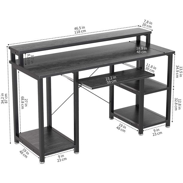 47" Computer Desk with Monitor Stand, Storage Shelves and Keyboard Tray Studying Writing Table for Home Office, Black - Walmart.com