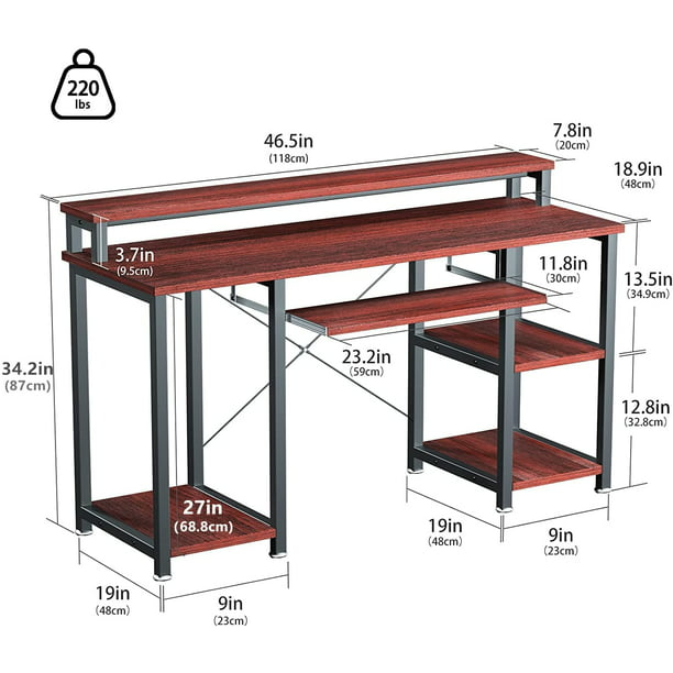 47" Computer Desk with Monitor Stand, Storage Shelves and Keyboard Tray Studying Writing Table for Home Office, Cherry - Walmart.com