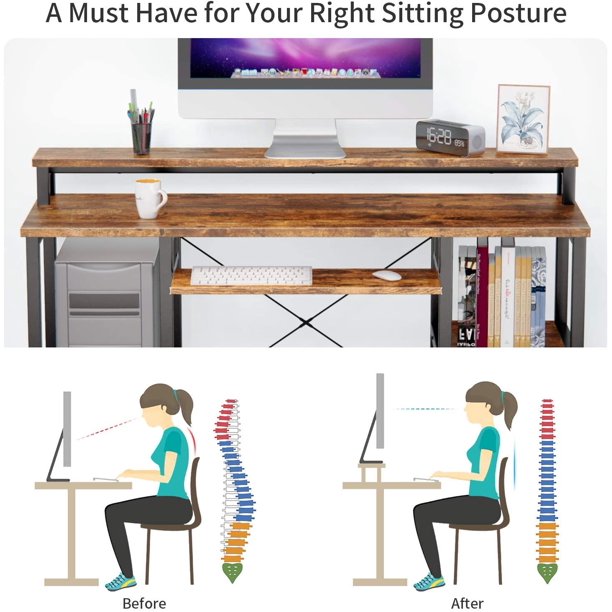 - Monitor Stand Shelf: Computer desk raised shelf can place the monitor and increase the storage space. The shelf keeps your monitor at your sight level and effectively improves your sitting posture