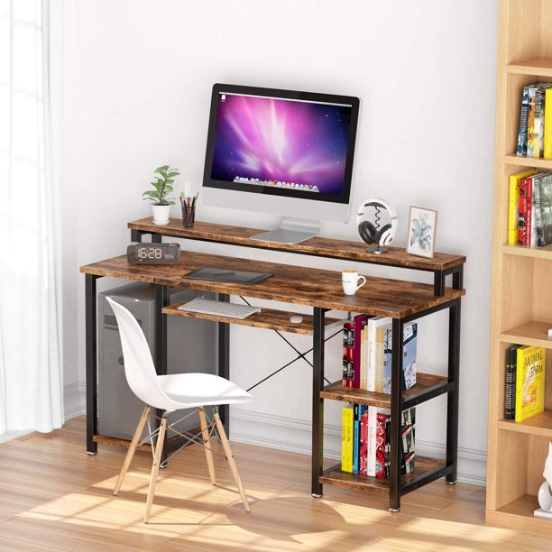47" Computer Desk with Monitor Stand, Storage Shelves and Keyboard Tray Studying Writing Table for Home Office, Rustic Brown - Walmart.com