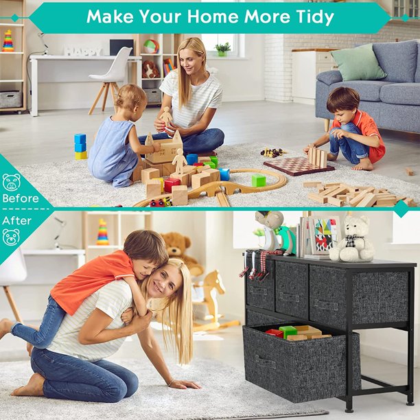 Organizing isn't boring anymore when you have an affordable fabric storage dresser. Finding things suddenly become easier. Things don't just disappear anymore. It allows you to move around your home and enjoy the space, instead of moving around things that are in the way.Create simple habits that keep you and your stuff in check. You also can share the joy of organizing with your child and let your child develop the habit of organizing and sorting from a young age with the dresser.Ample room for storage multiple items.Vertical space-saver design ideal for small space.Metal frame, in-sided thicker cardboard provide excellent durability.No-woven fabric drawer is easy to maintain with just wet cloth.Multi-purpose storage drawer unit ideal for every room throughout your home.