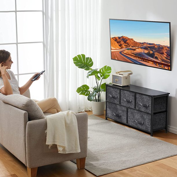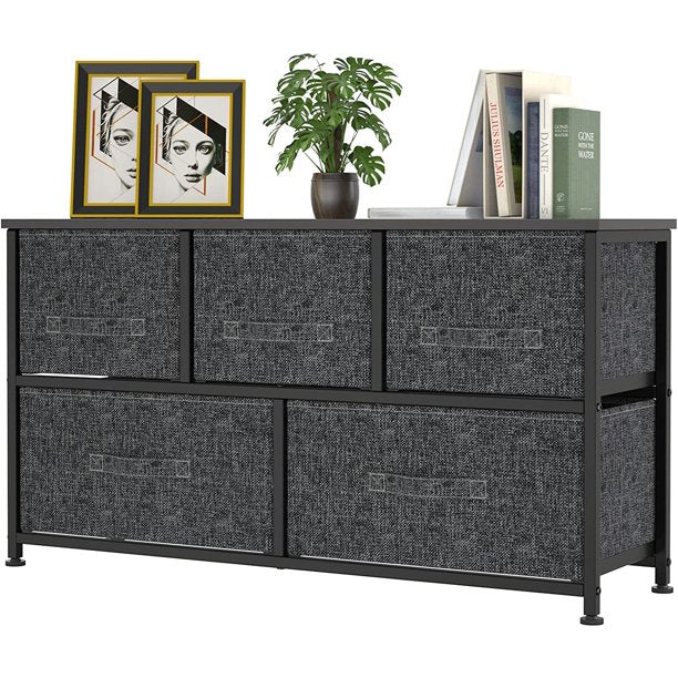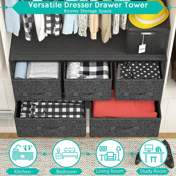 5 Drawer Fabric Dresser Wide Storage Tower with Wood Top Organizer Unit for Closet, Hallway, Entryway, Nursery Room, Bedroom, Living Room - Walmart.com