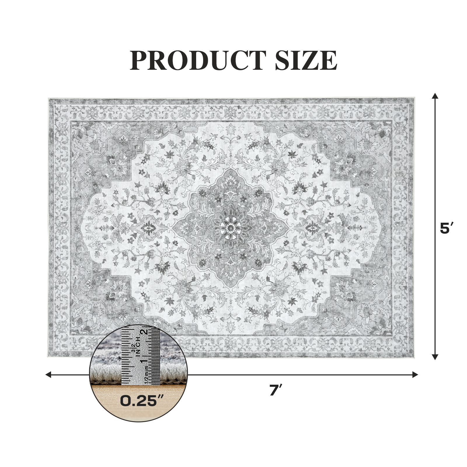 5'x7' Machine-washable Area Rugs for Living Room, Stain Resistant Non-Shed Carpet, Boho Area Rugs with Non-Slip Backing for Bedroom, Dining Room, Dorm, Office
