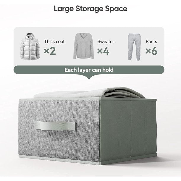 Our closet organizers and storage use the vertical space in your closet to maximize capacity and increase convenience. The contemporary fabric and color fit in well with any design style and aesthetic. Utilize the closet organizer to store bulky sweaters, shirts, pants, handbags, purses, shoes, and hats to make the most of your closet space.