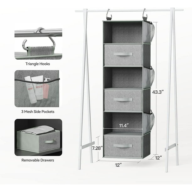 6-Shelf Hanging Closet Organizer Hanging Shelves for Closet with 3 Removable Drawers & Side Pockets, 12'' x 12'' x 43.3'' - Walmart.com