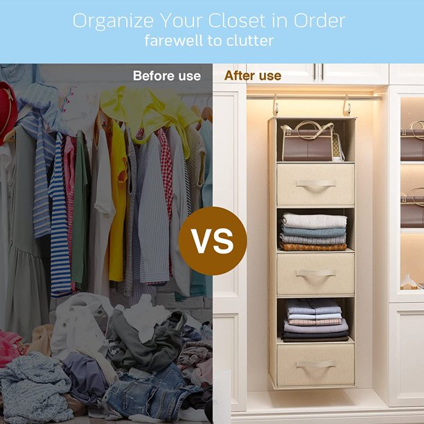 - High-quality material: The Hanging Closet Organizer is made of durable and thick non-woven, built to last. Each organizer includes 3 removable drawers that can fit inside the unit or can be used separately for storage