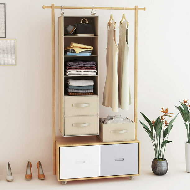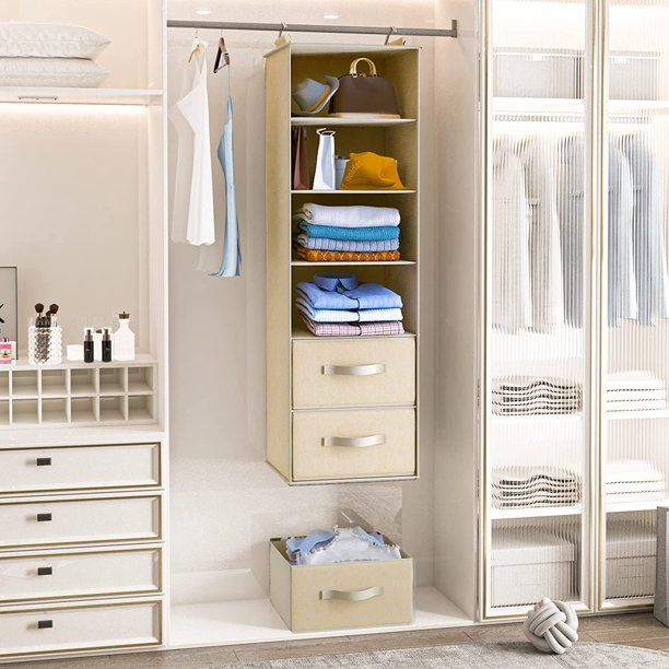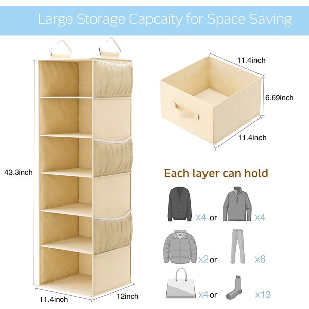 6-Shelf Hanging Closet Organizer with 3 Removable Drawers & Side Pockets Hanging Shelf Organizer for Closet, 11.4''W x 12''D x 43.3''H - Walmart.com