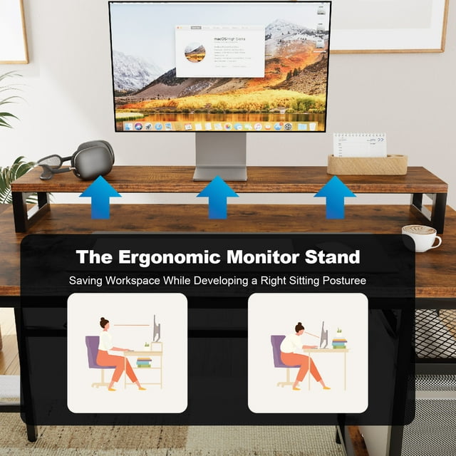 - WITH MONITOR STABD: The monitor stand that elevating your line of sight, allowing you to maintain proper sitting posture and protect your cervical and spinal health