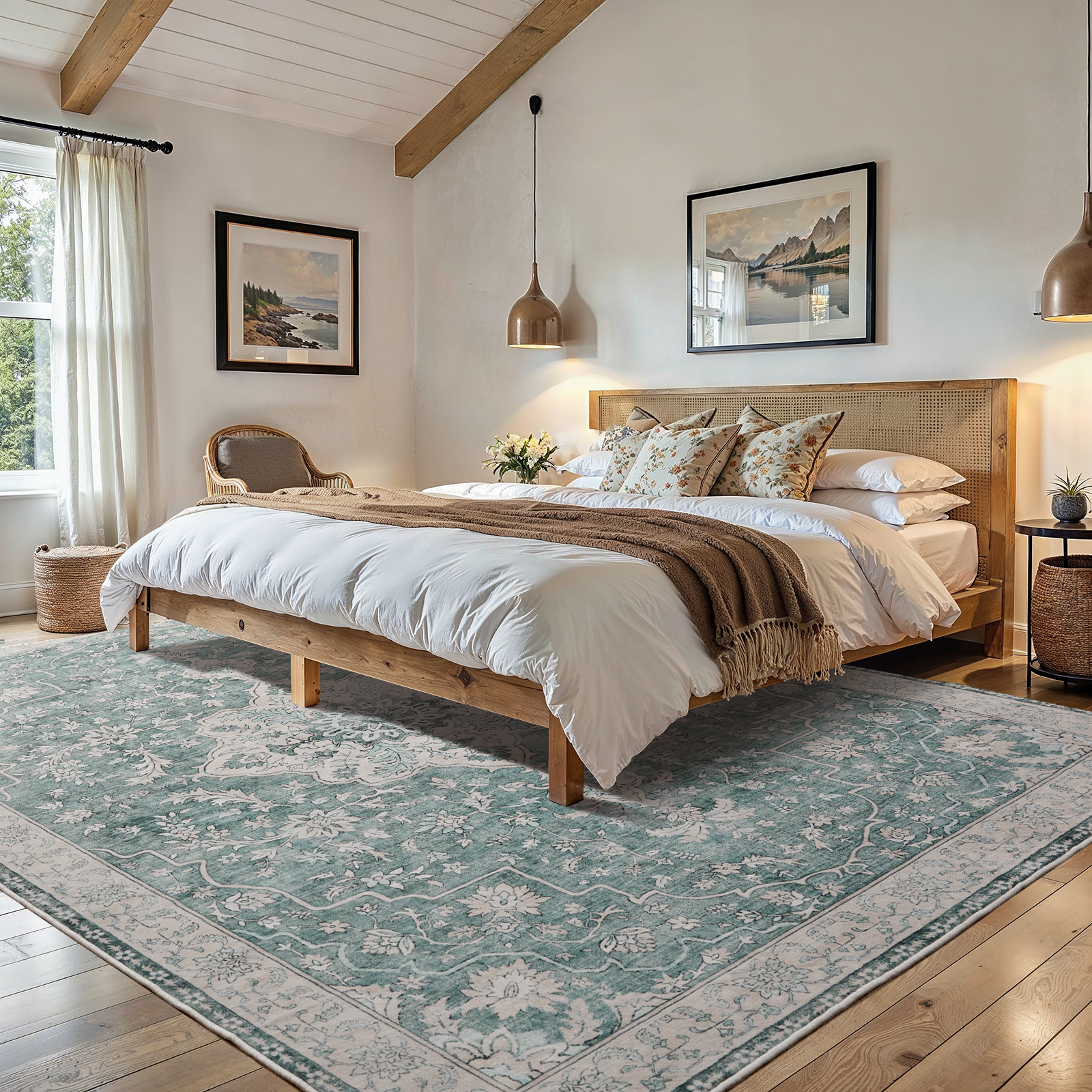 8'x10' Boho Area Rugs for Living Room, Machine Washable Area Rug with Non-Slip Backing, Stain Resistant Non-Shed Carpet for Bedroom, Dining Room, Dorm, Office