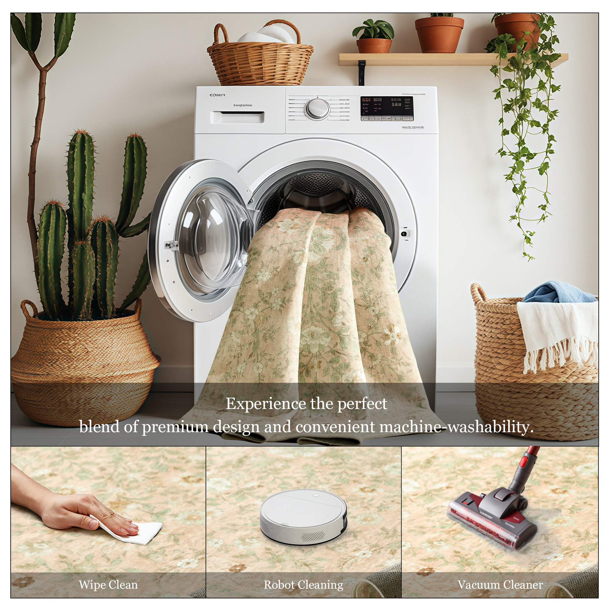 • 【Easy Care】With its machine-washable feature, this rug is incredibly easy to clean and maintain. Simply toss it in the washer, and it’ll look as good as new—every time. For daily care, a swift sweep or wipe suffices. Perfect for busy households, pet owners, or anyone who values convenience.