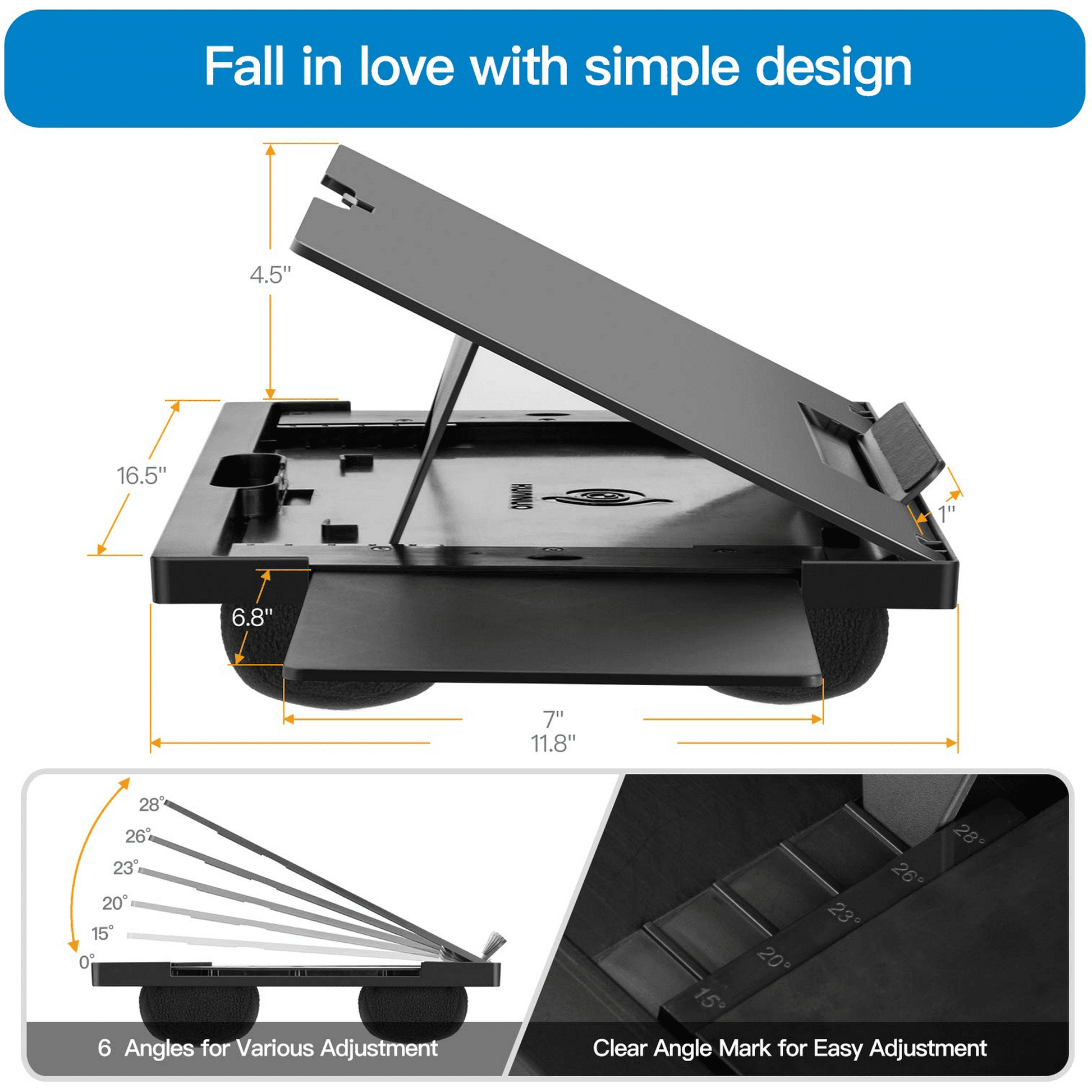 - 【6 Adjustable Angles】This laptop stand has 6 tilt angles (0°/15°/20°/23°/26°/28°), you can choose the most comfortable angle for viewing or typing.