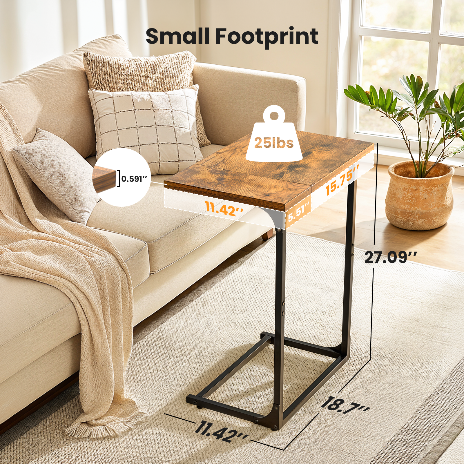 - 【Extra-Wide Tabletop】Our expanded tabletop offers ample space for all your essentials, keeping everything within easy reach. This C Table measures 21.1" x 11.4" and has a height of 27 inches, providing plenty of room for your legs.
