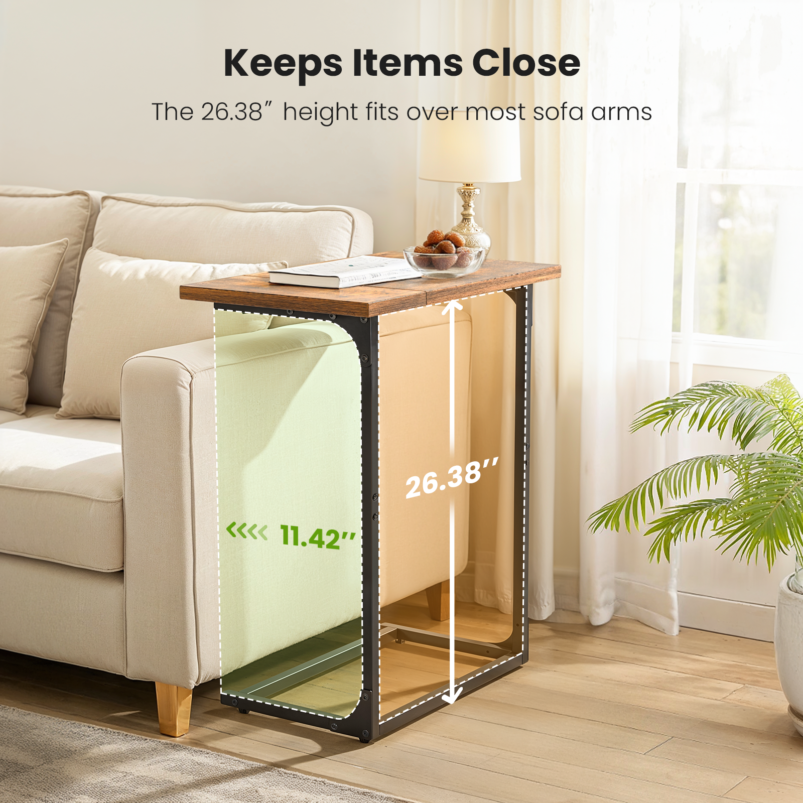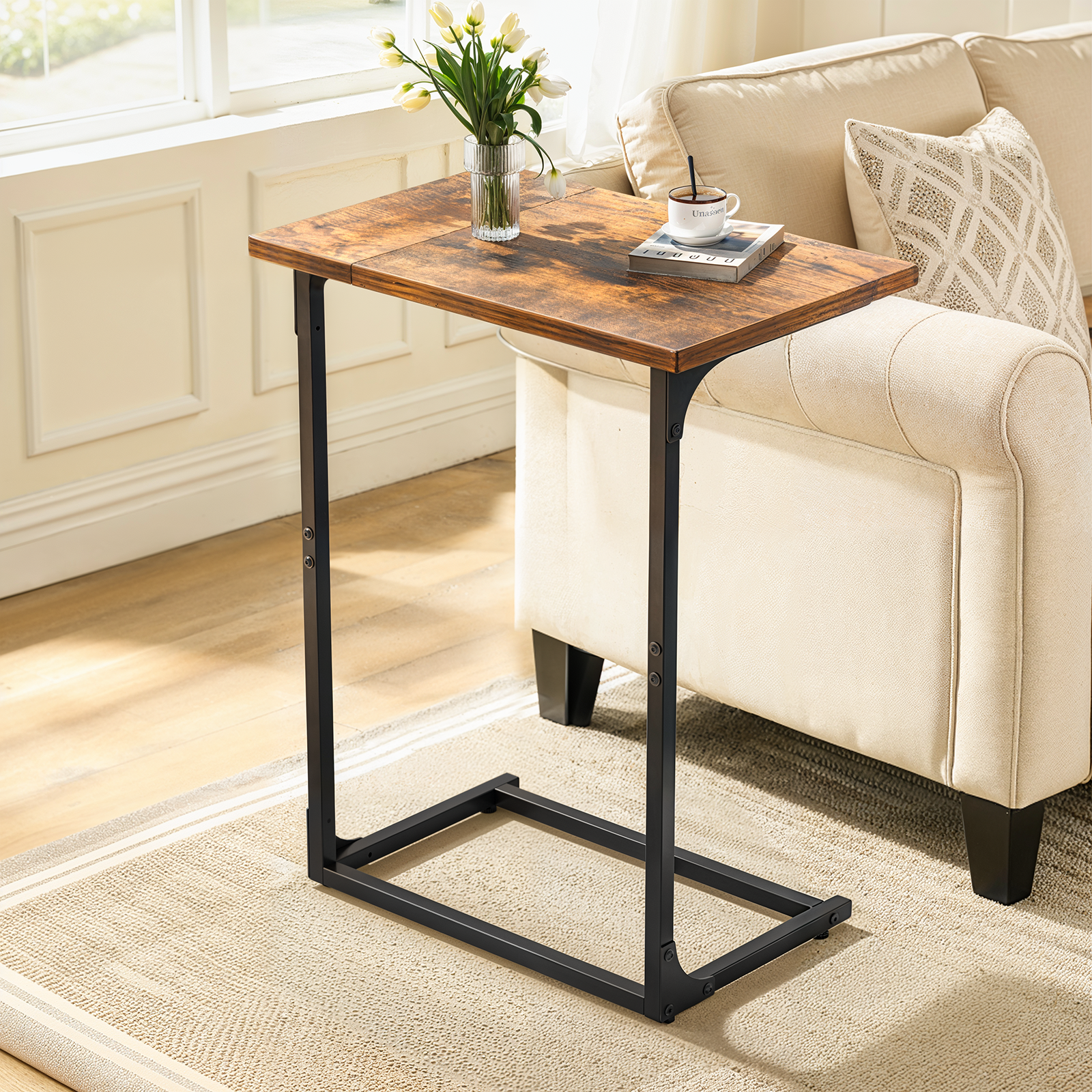 C Shaped End Sofa Table, Widened Vintage End Table Side Table for Living Room, Bedroom, 27"(H) x 21.1"(W) x 11.4"(D), Brown