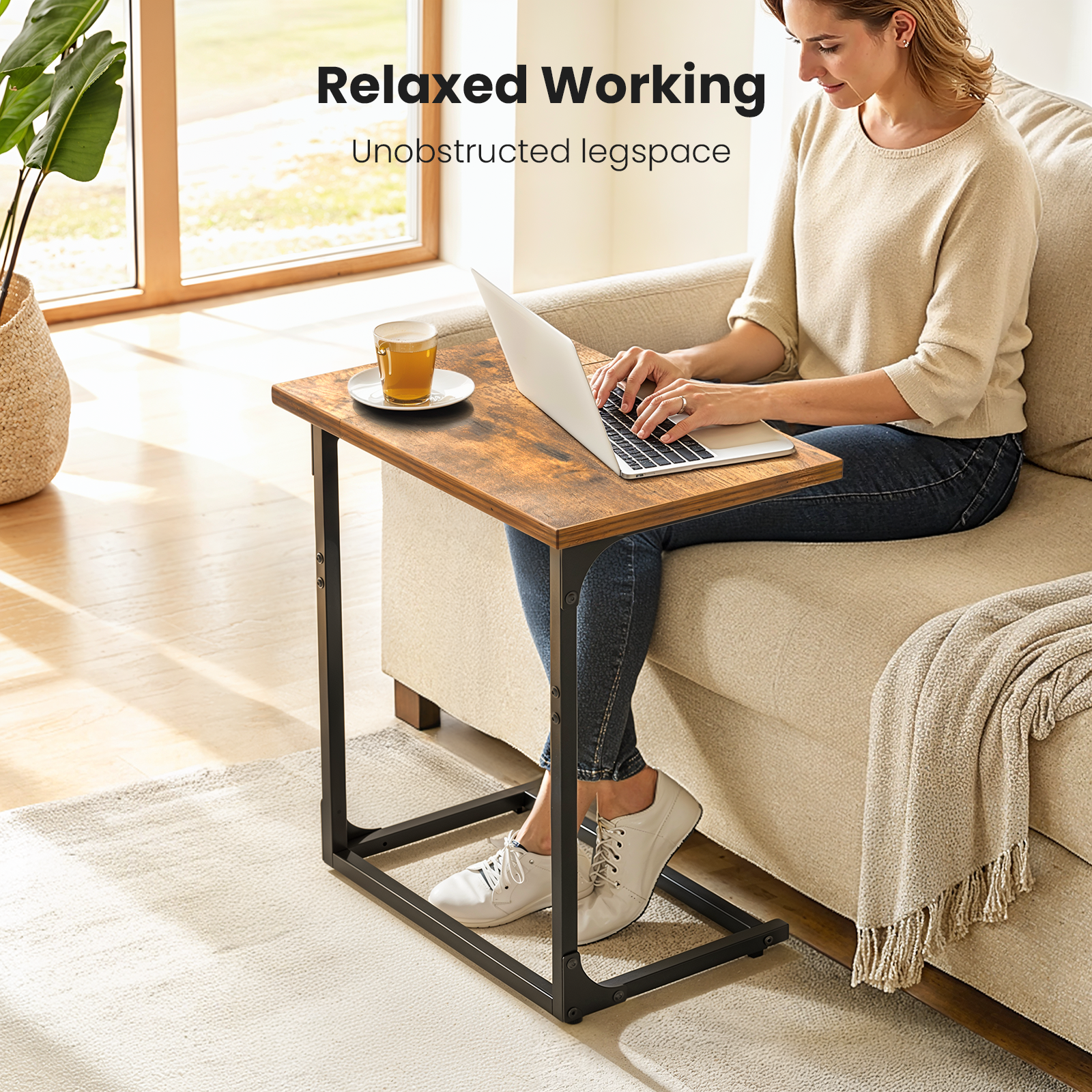Tired of cluttered living spaces and impractical furniture? Meet the C-Side Table, the game-changer you've been waiting for. This industrial end table is not only sturdy but modern to match your furniture set. The C-shaped tray table stands steady on the floor and you can place it beside your bed or sofa as a laptop table, nightstand, breakfast table, coffee table or end table to save space. Its compact and space-saving structure is ideal for living rooms, bedrooms, dining rooms, offices, lobbies, and lounges alike.