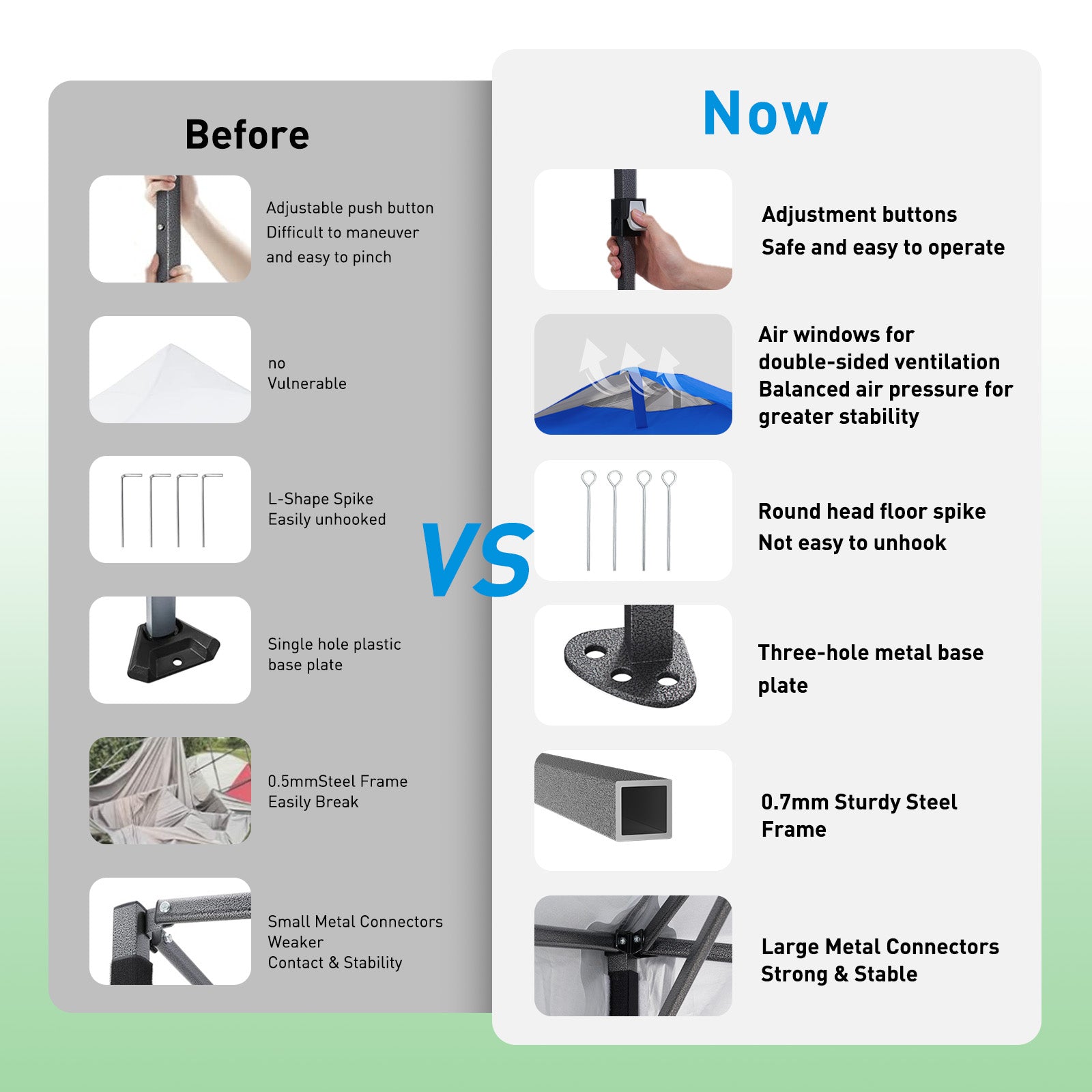 【Lasting Stability】The canopy is built with a reinforced metal frame and durable joints, delivering long-lasting performance. The vented top reduces wind pressure and enhances stability, keeping the canopy more stable in windy conditions.