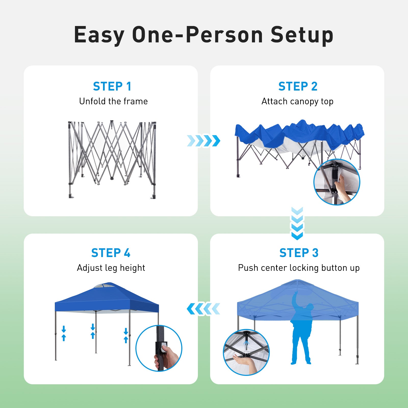 CHITOOMA 10 x 10ft Pop up Canopy Tent, Instant Outdoor Shelter Easy Portable Straight Leg Canopy Tent, Blue