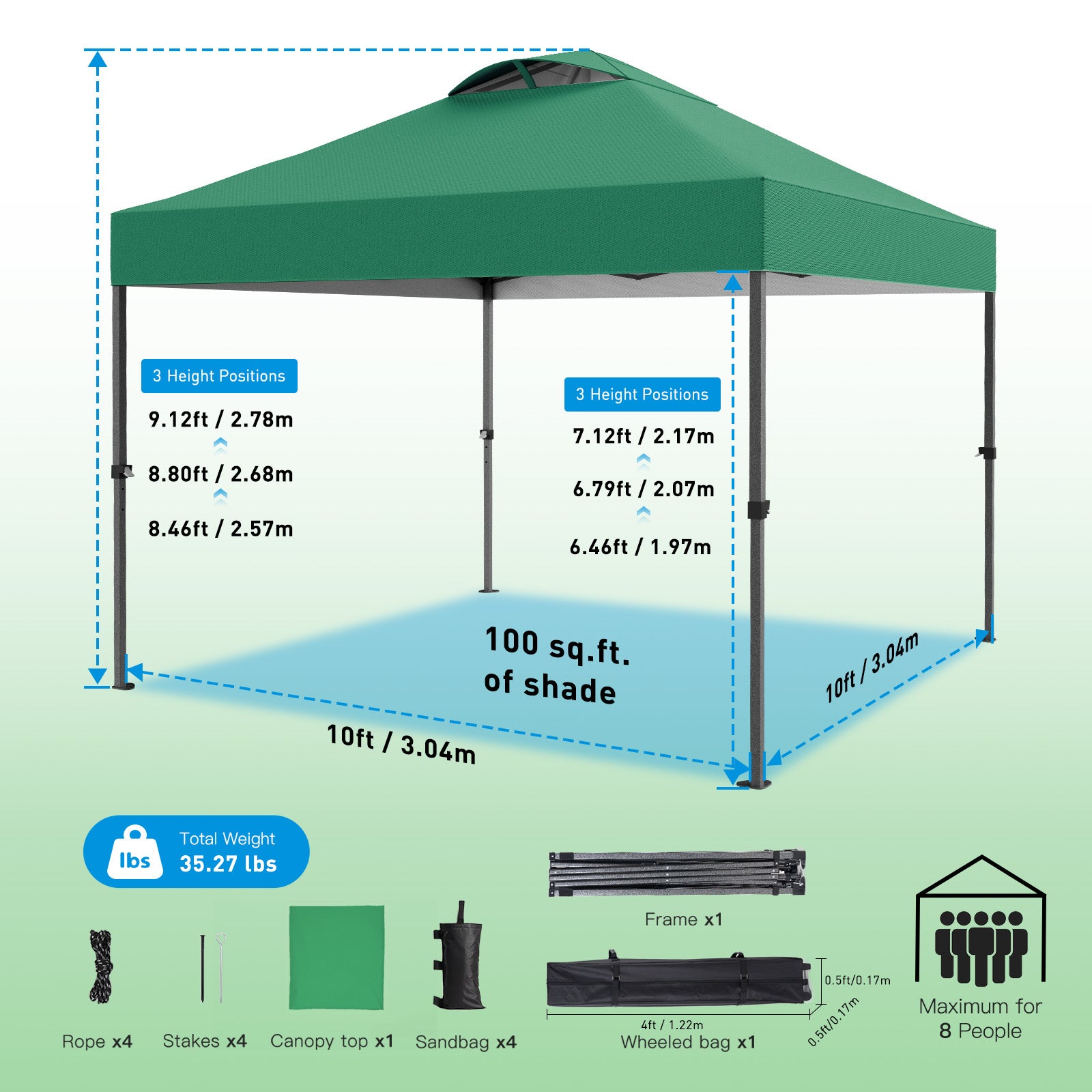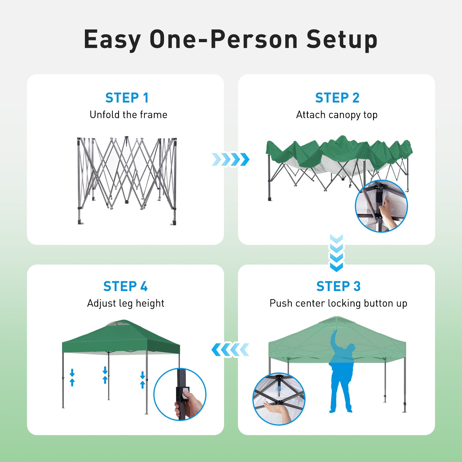 CHITOOMA 10 x 10ft Pop up Canopy Tent, Instant Outdoor Shelter Easy Portable Straight Leg Canopy Tent, Green