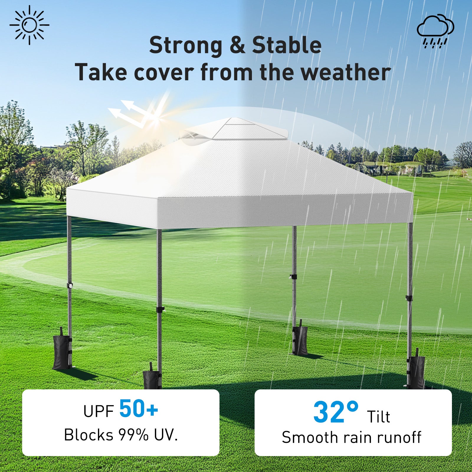 【Lasting Stability】The canopy is built with a reinforced metal frame and durable joints, delivering long-lasting performance. The vented top reduces wind pressure and enhances stability, keeping the canopy more stable in windy conditions.