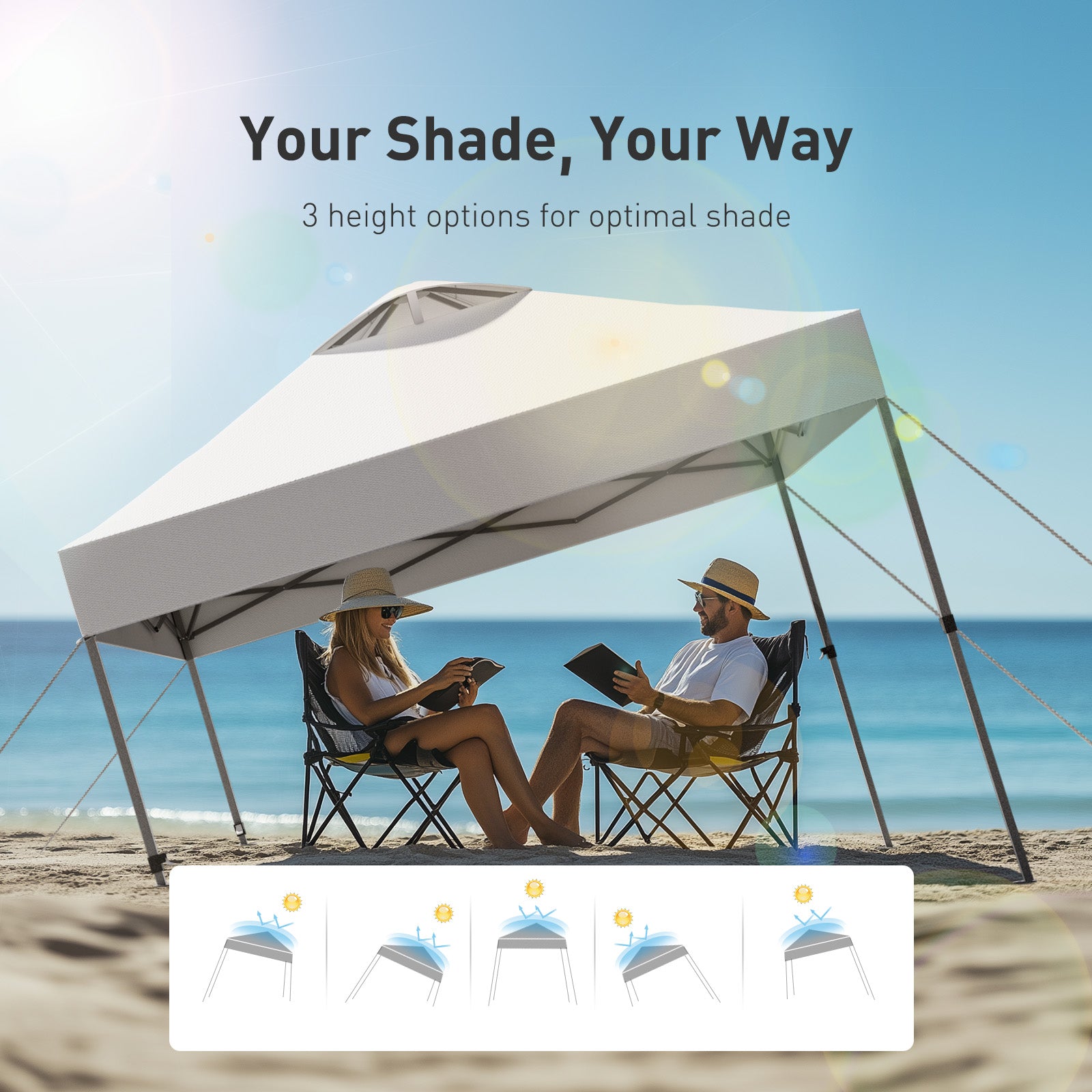 - Features:Waterproof, UV-resistant coating, Easy setup, Three-position height adjustable frame