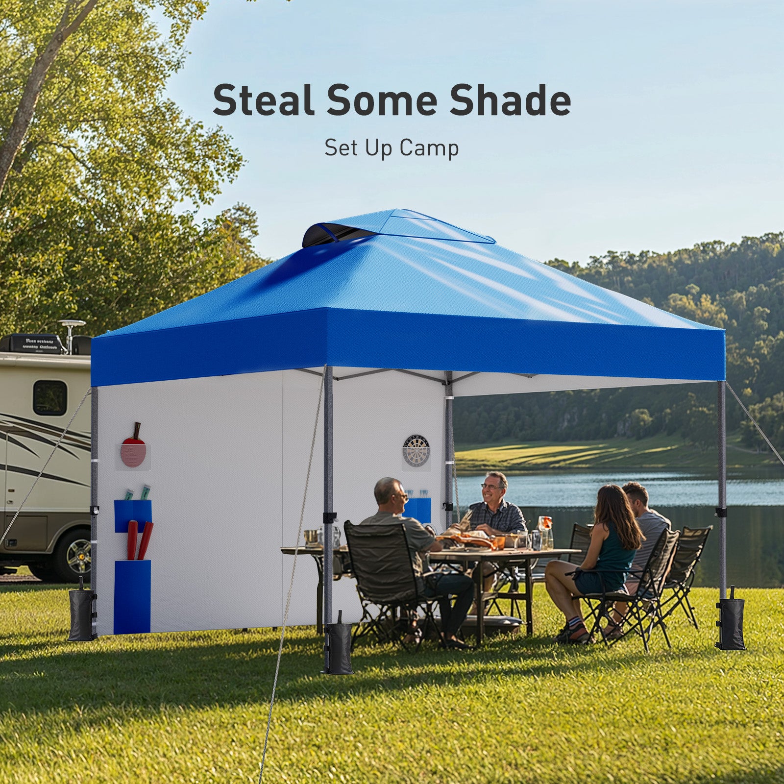 CHITOOMA 10 x 10ft Pop up Canopy Tent, Instant Outdoor Shelter Easy Portable Straight Leg Canopy Tent with Pockets Sidewall, Blue