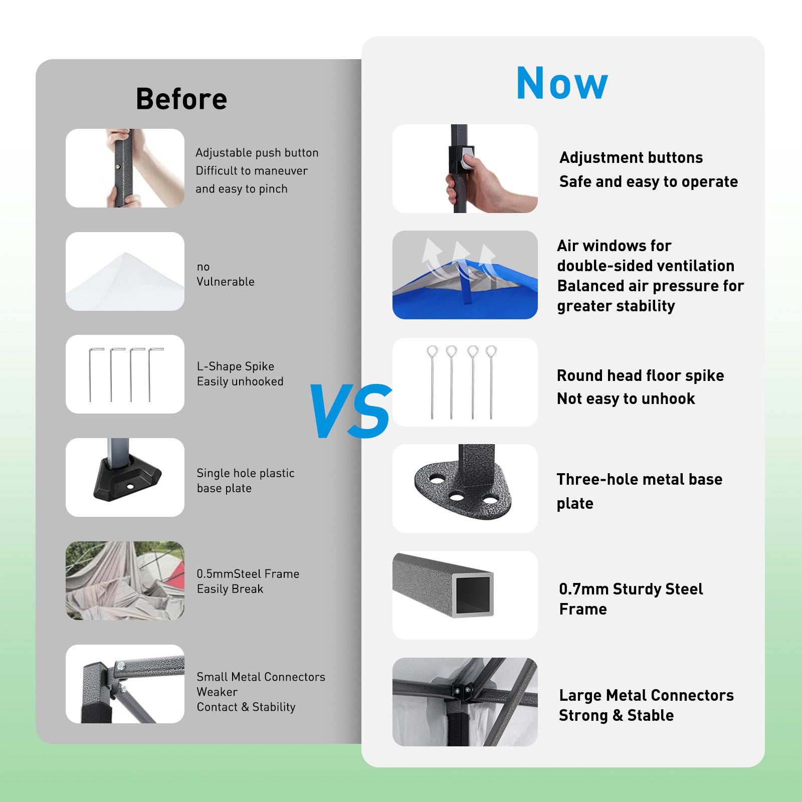 【Lasting Stability】The canopy is built with a reinforced metal frame and durable joints, delivering long-lasting performance. The vented top reduces wind pressure and enhances stability, keeping the canopy more stable in windy conditions.
