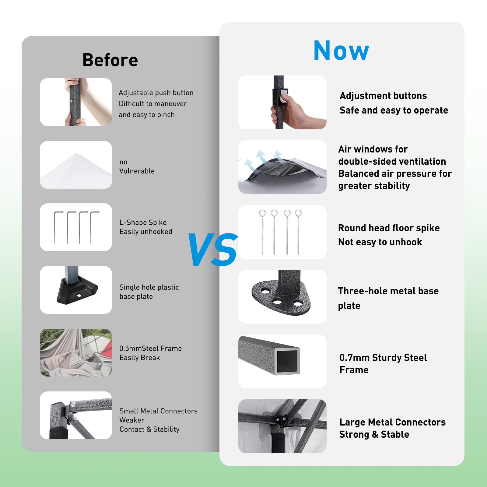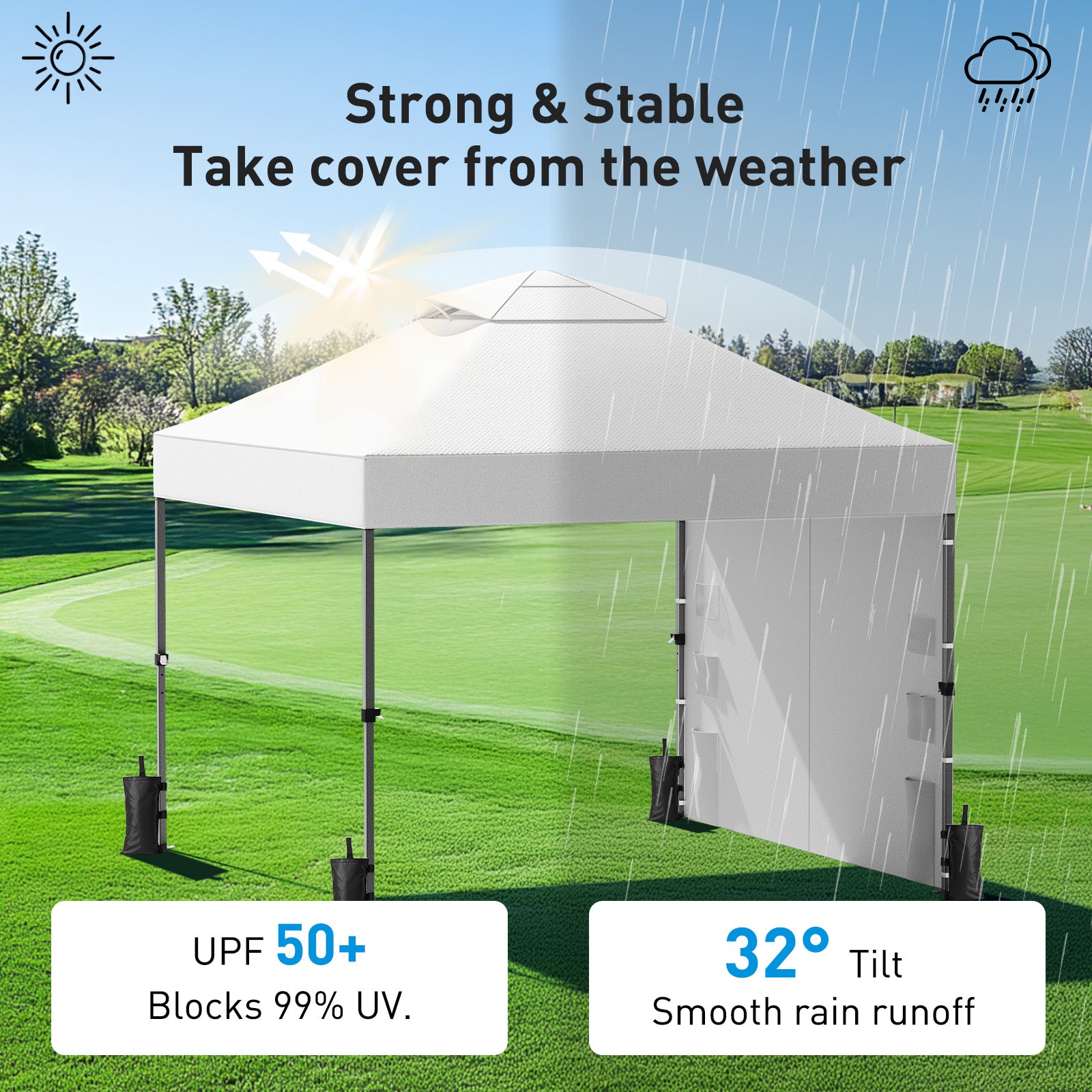 【Lasting Stability】The canopy is built with a reinforced metal frame and durable joints, delivering long-lasting performance. The vented top reduces wind pressure and enhances stability, keeping the canopy more stable in windy conditions.