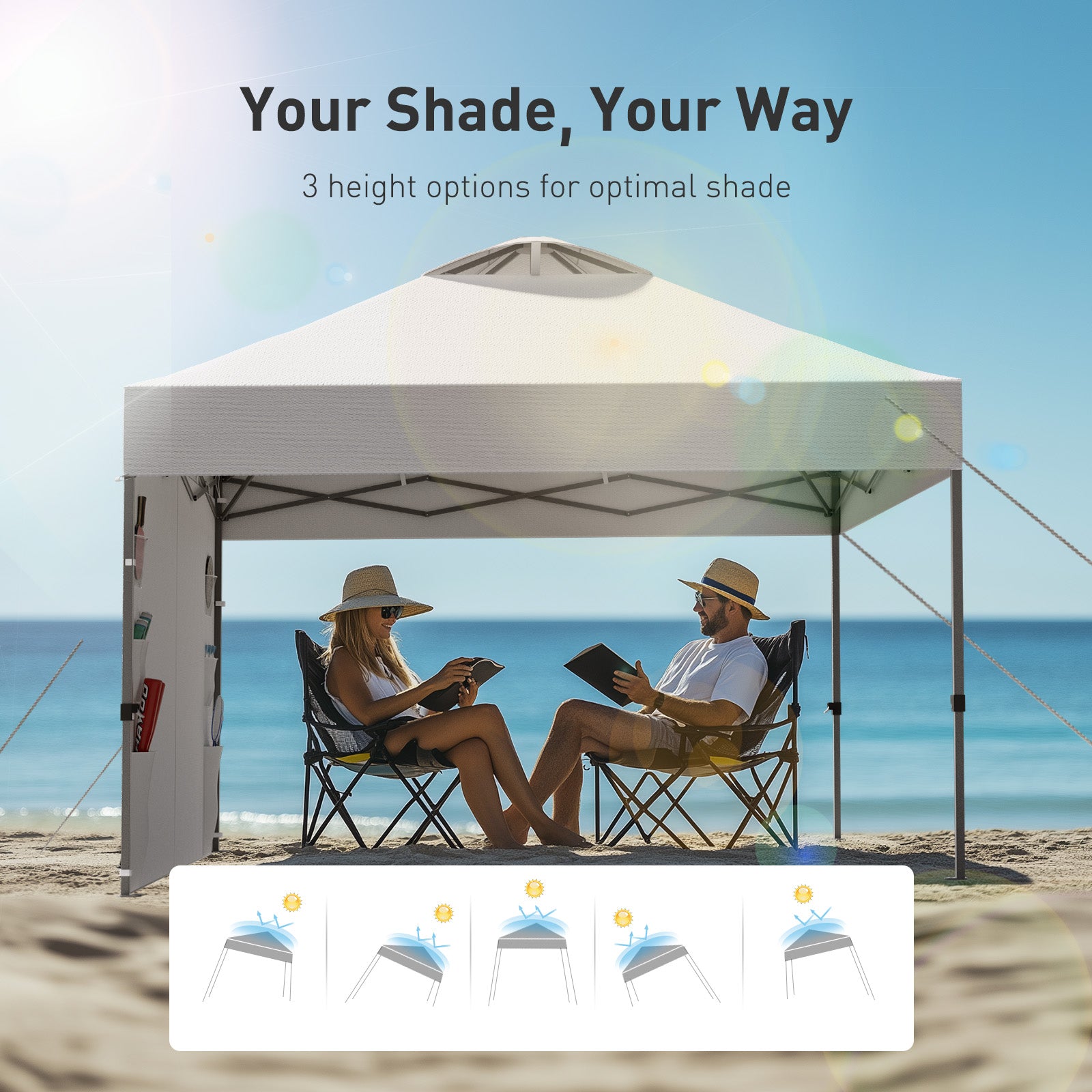 - Features:Waterproof, UV-resistant coating, Easy setup, Three-position height adjustable frame
