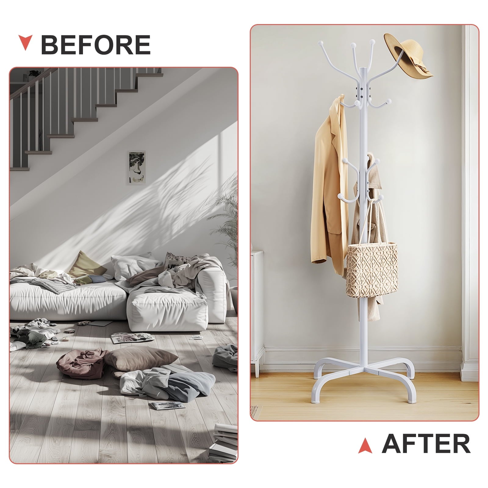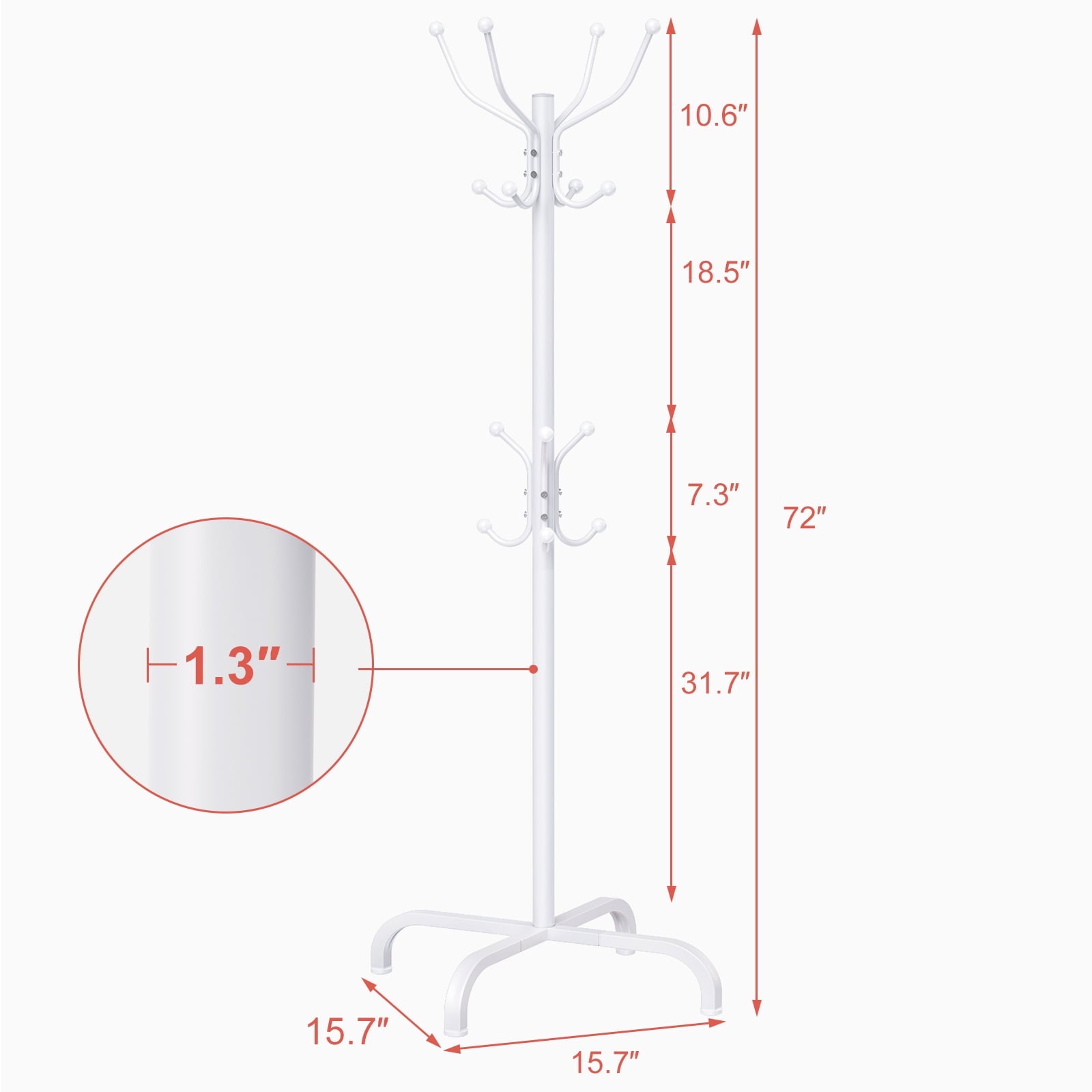 CHITOOMA 14 Hooks Coat Rack Stand Metal Storage Rack Floor Hat Clothing Display Stand, White