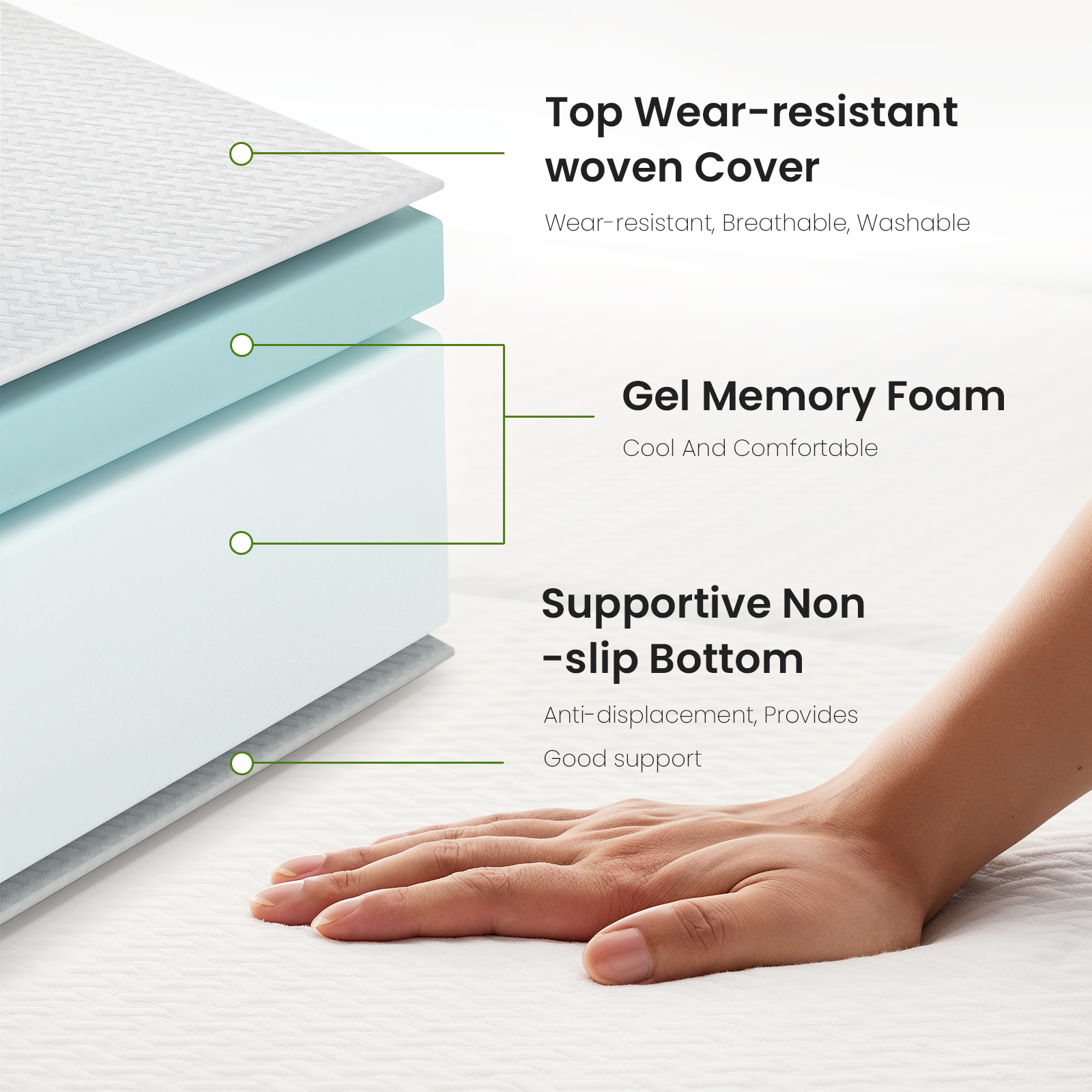 Comfortable Support: This Tri Folding Memory Foam features a higher density support foam. This upgraded support foam will keep the mattress from collapsing, provides perfect support for your body and a restful night's sleep