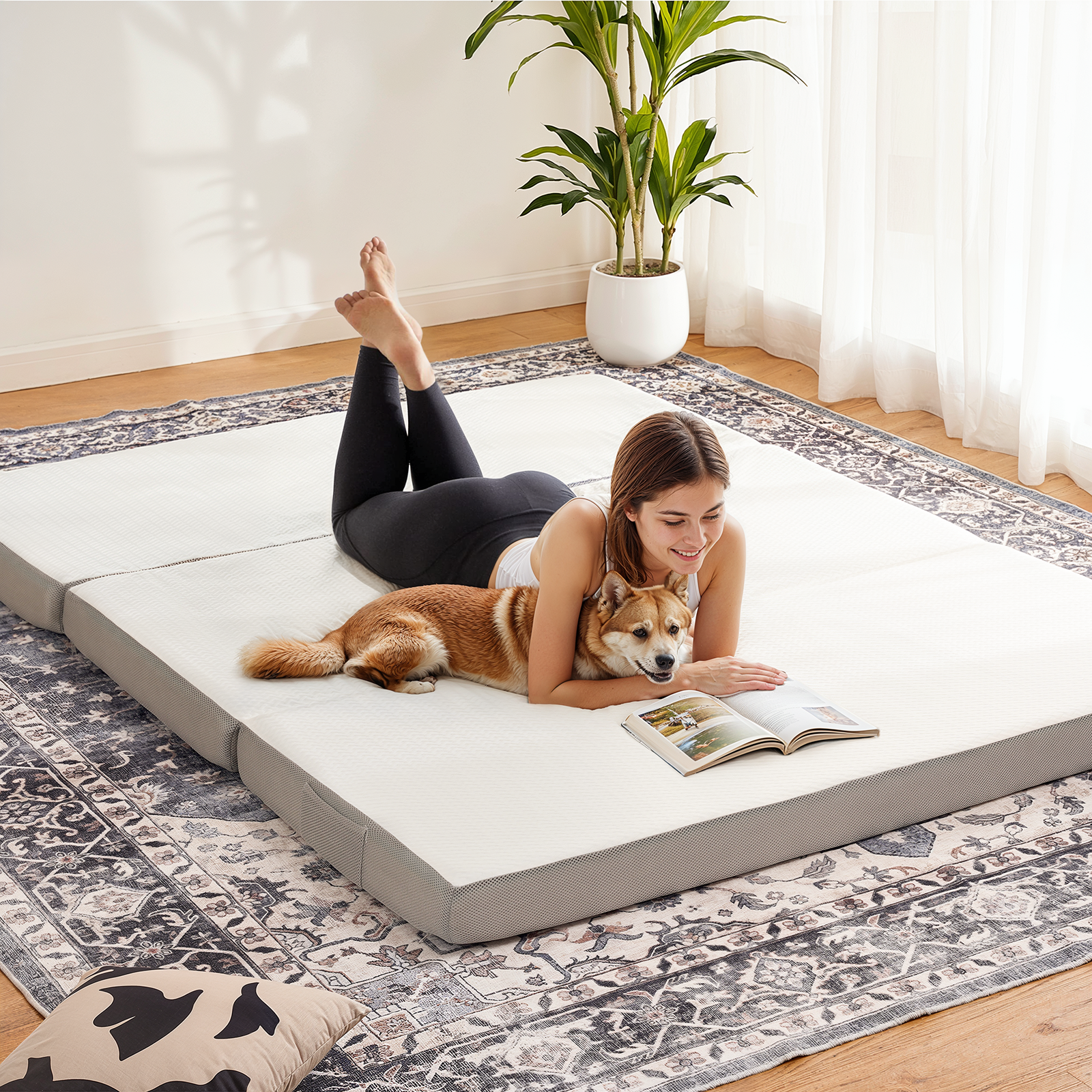 Space-Saving Design: The 4 inch Tri-fold Memory Foam Mattresses are engineered to fold into three sections, allowing for easy storage in tight spaces. When folded, they can be stacked vertically or horizontally, making them ideal for closets, under beds, or even in the trunk of a car