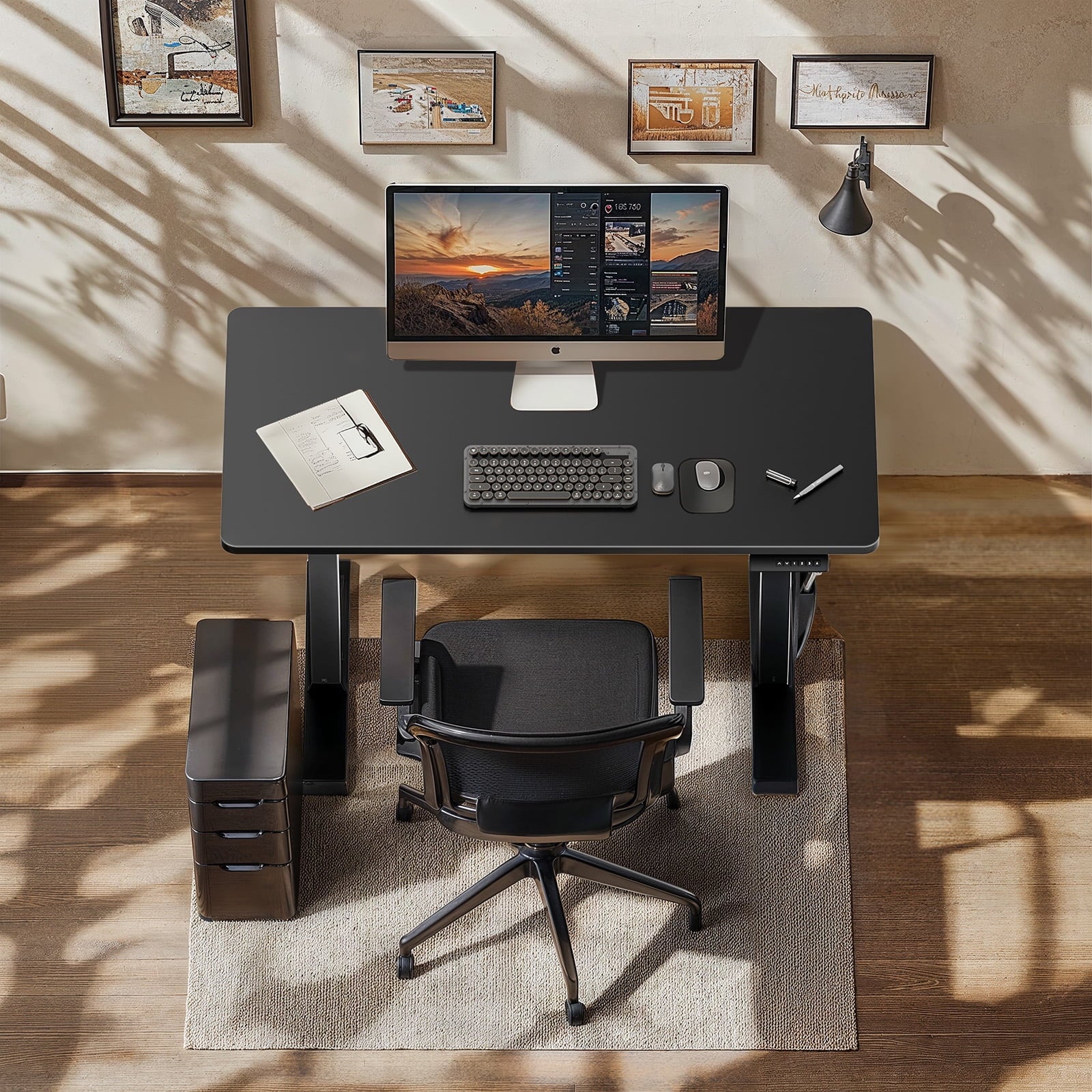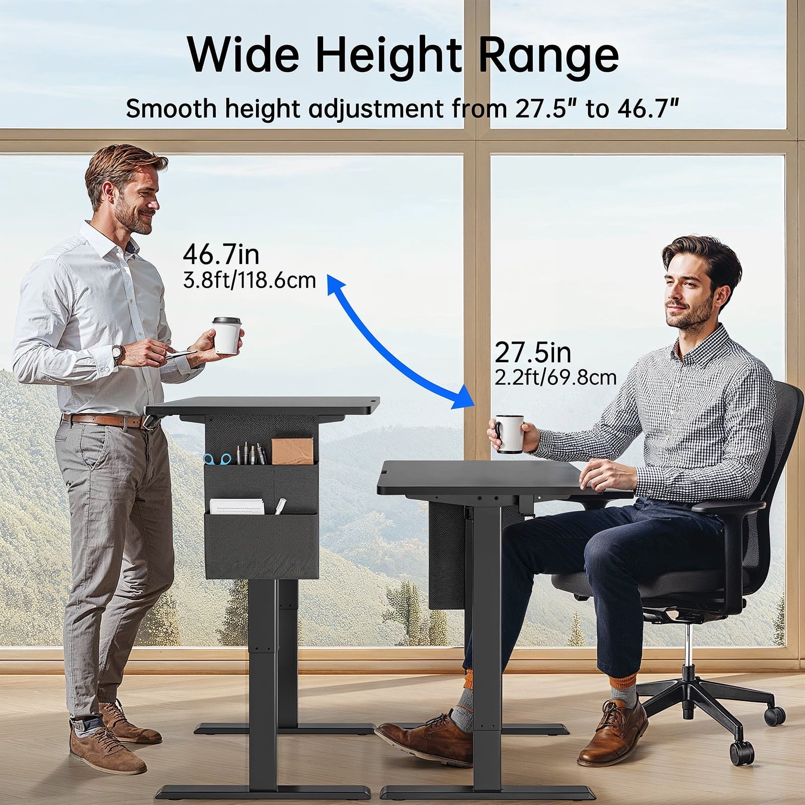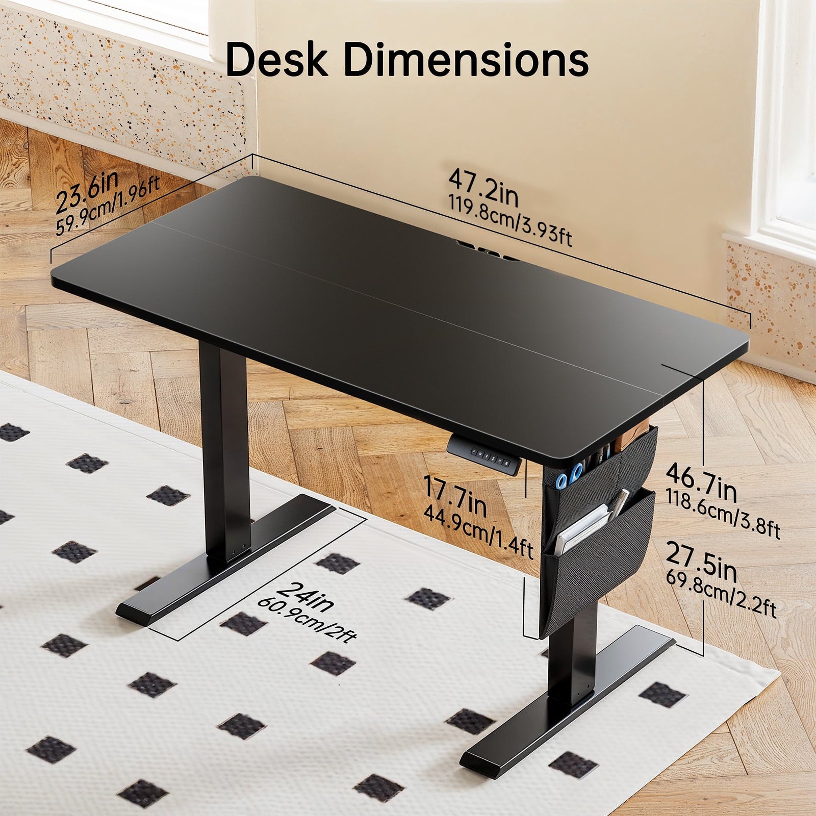 CHITOOMA Electric Standing Desk with Storage Bag, 48" x 24" Adjustable Height Sit to Stand Desk with 4 Memory Pre-Set, Headphone Hook for Home Office, Black