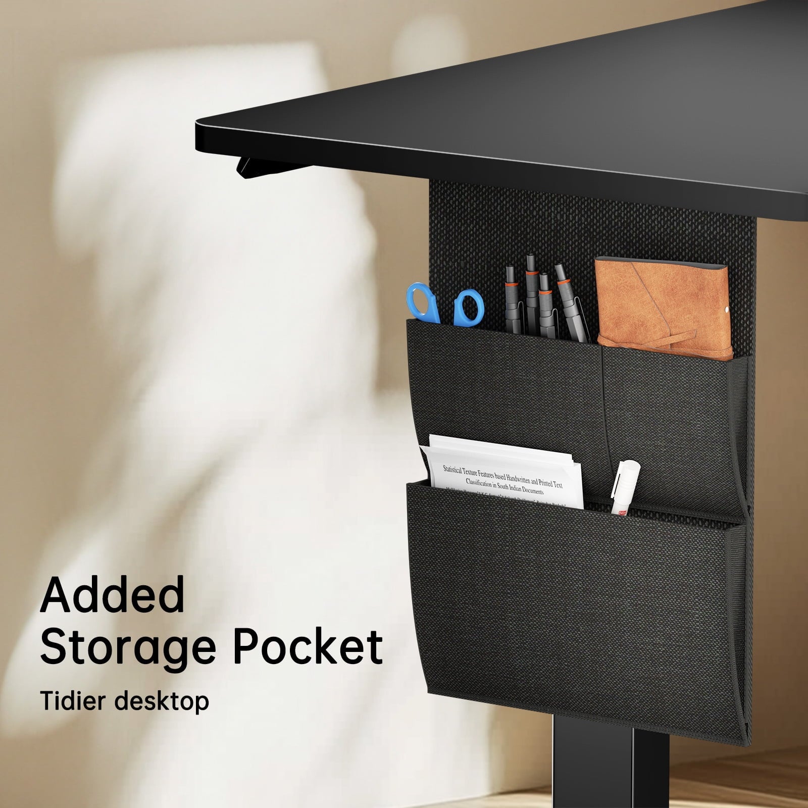 - Large Side Storage Pocket: Our height adjustable sit to stand desk come with double-layered pocket, this pocket will be packed your things in it, It is easy access to essentials without using desk space. Besides, the cable organizer will organize you cords.
