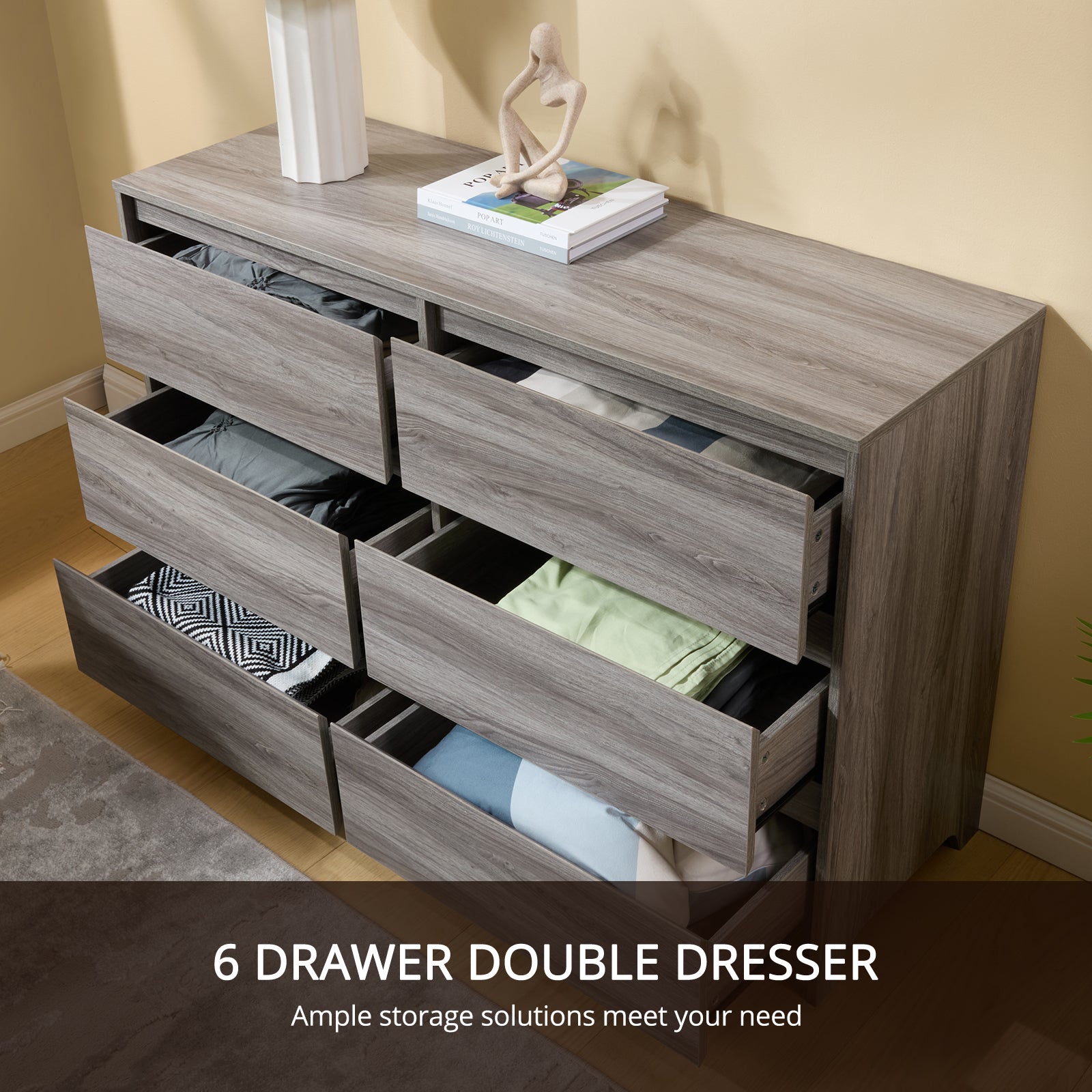 CHITOOMA 6 Drawer Dresser Wood Storage Cabine for Bedroom, Closet, Hallway, Entryway, Nursery Room, Gray