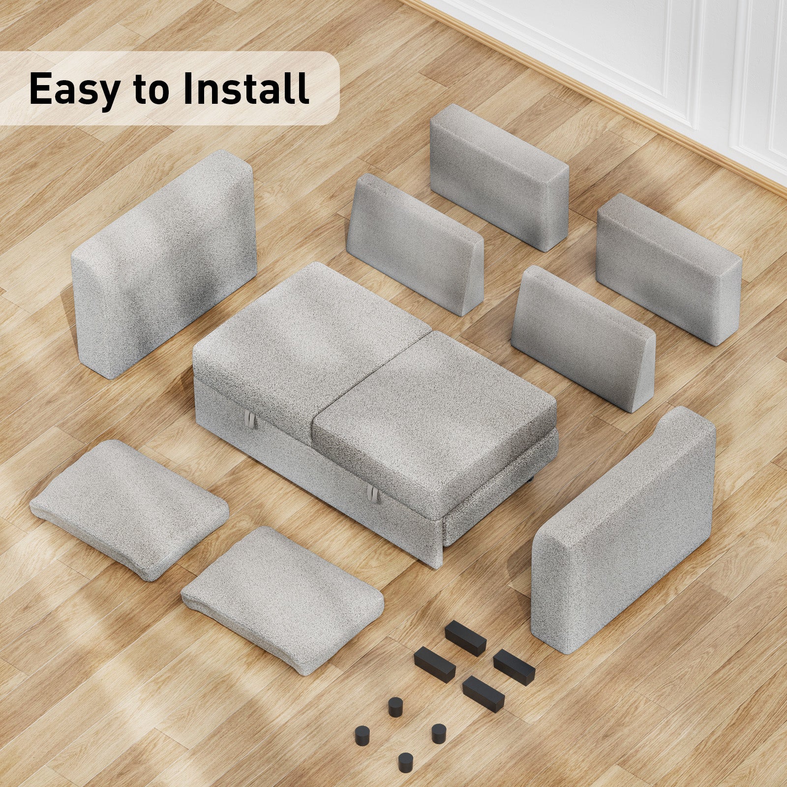- Versatile Design: This modern small sofa bed features a pull-out design, converting easily from a sofa to a small sleeper, perfect for offices, small apartments, or guest accommodations. The two-tone yarn woven boucle fabric with a textured surface offers a contemporary aesthetic while providing friction for comfortable sitting.