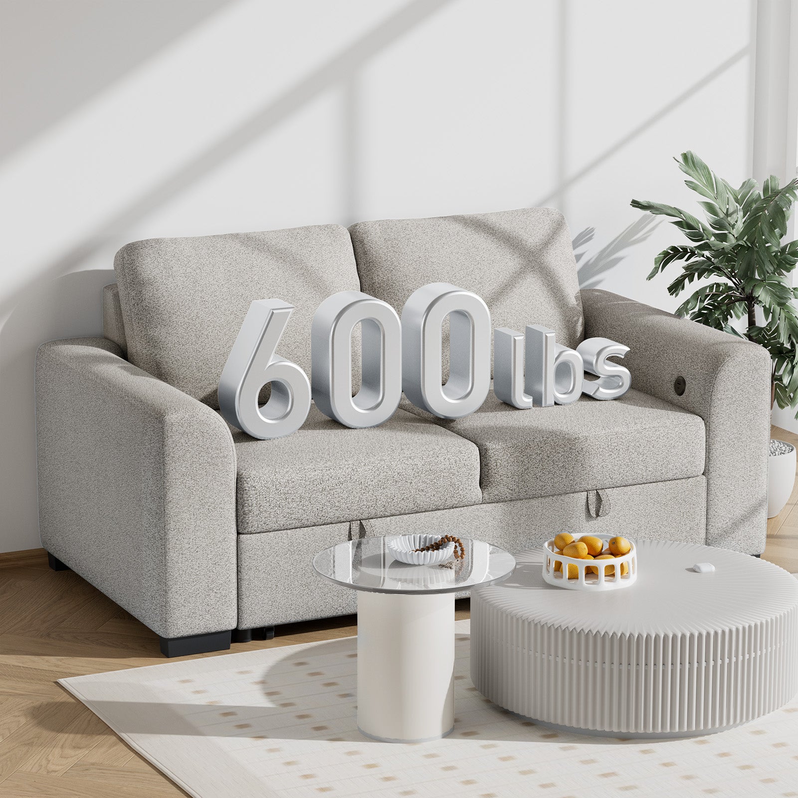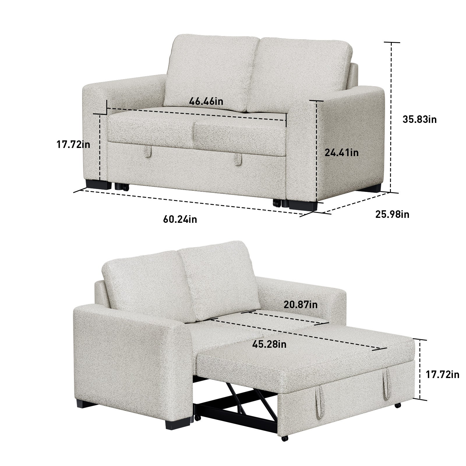 CHITOOMA 60'' Pull Out Sofa Bed Convertible Sleeper Couch with Charging Port, Upholstered Sectional Sofa with 2 Pillows, Reclining Sofas for Living Room, Beige