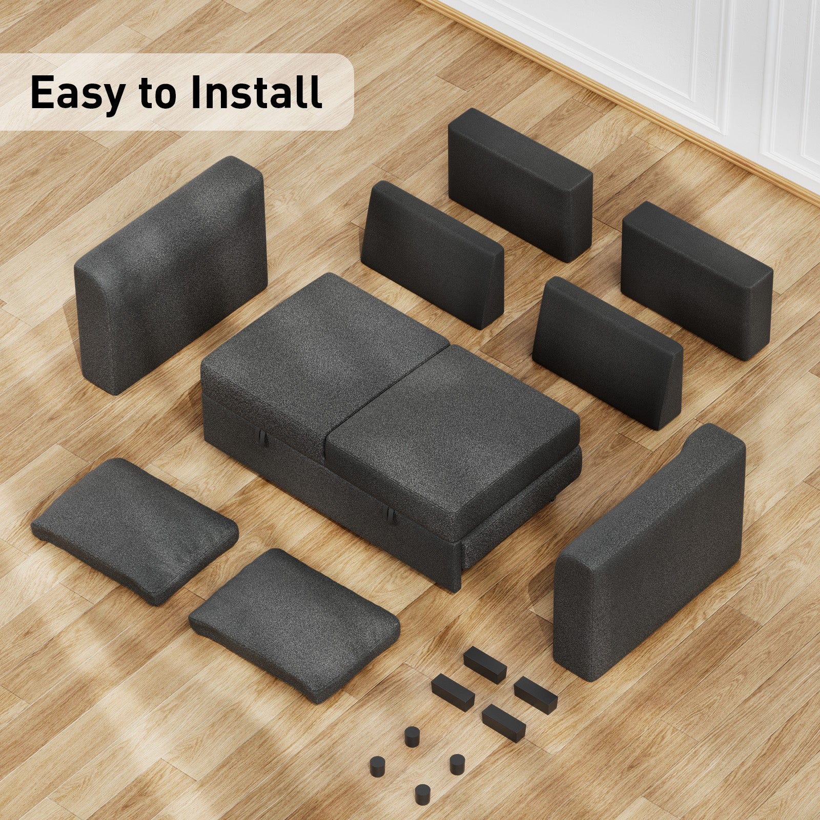- Versatile Design: This modern small sofa bed features a pull-out design, converting easily from a sofa to a small sleeper, perfect for offices, small apartments, or guest accommodations. The two-tone yarn woven boucle fabric with a textured surface offers a contemporary aesthetic while providing friction for comfortable sitting.